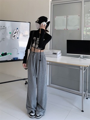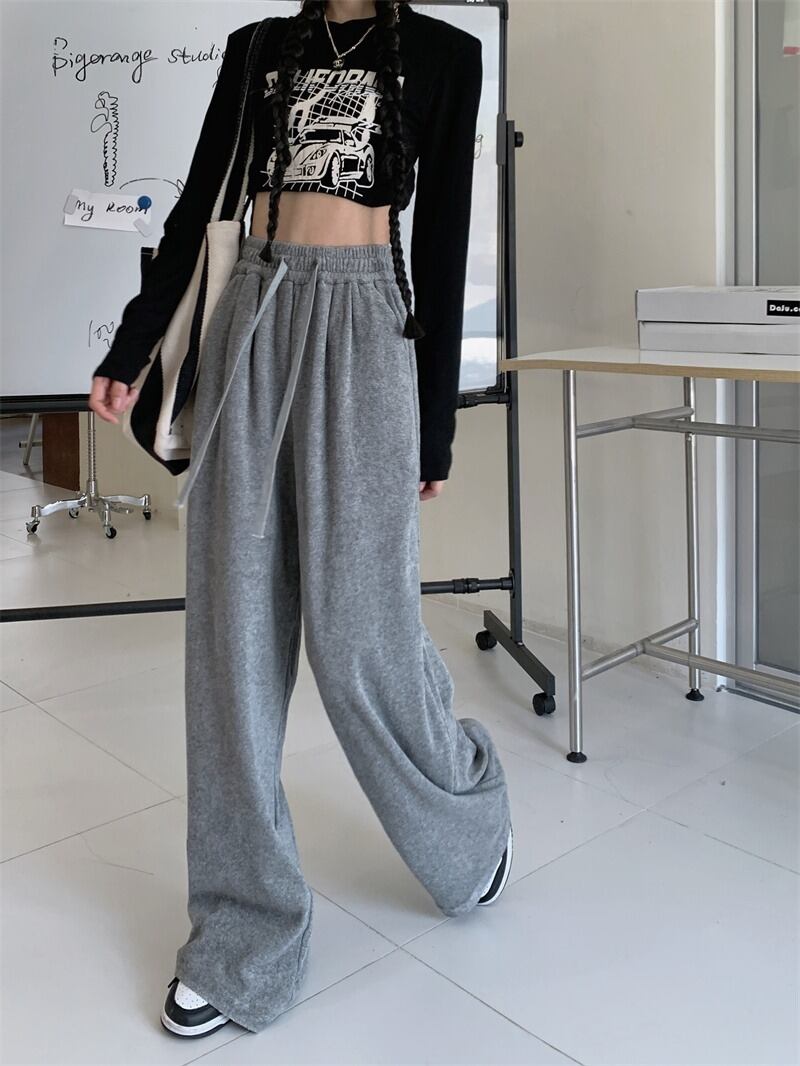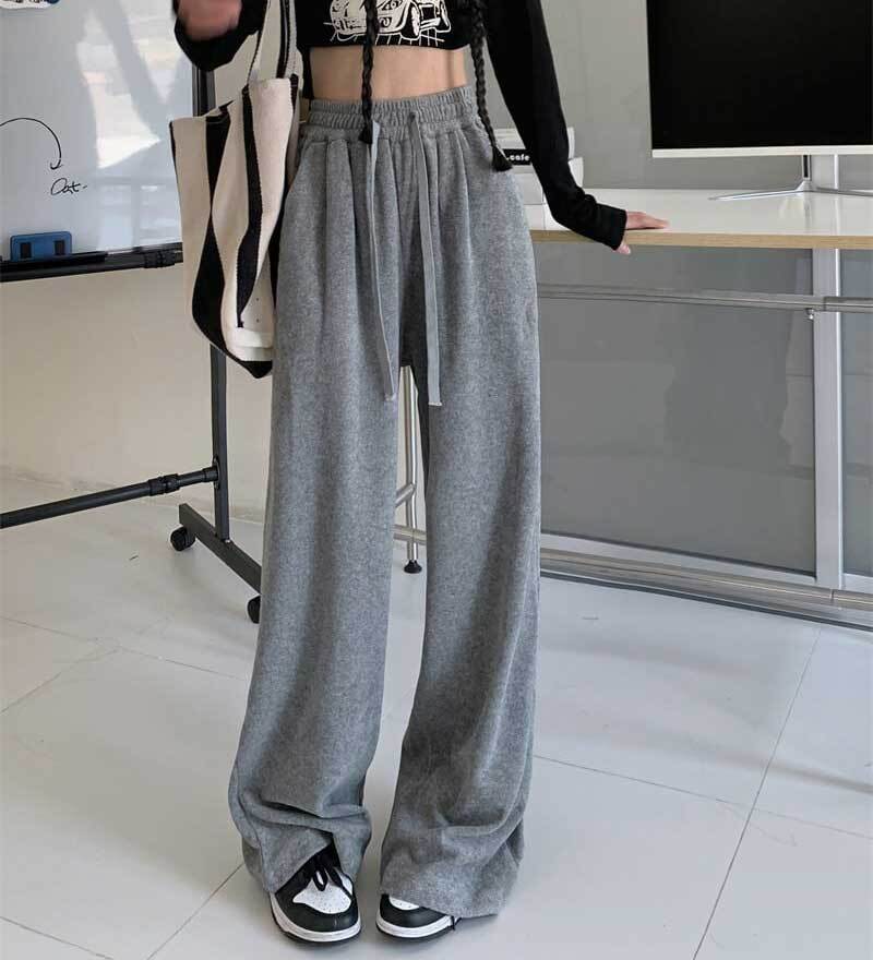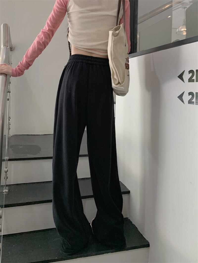 【韓国通販 dgo】2colors ハイウエスト ドレープ スウェットパンツ グレー/ブラック(W3157)トレンドアイテム