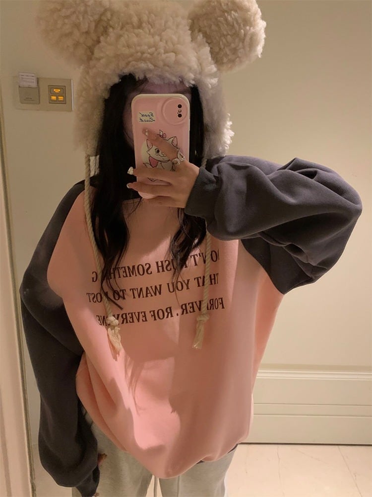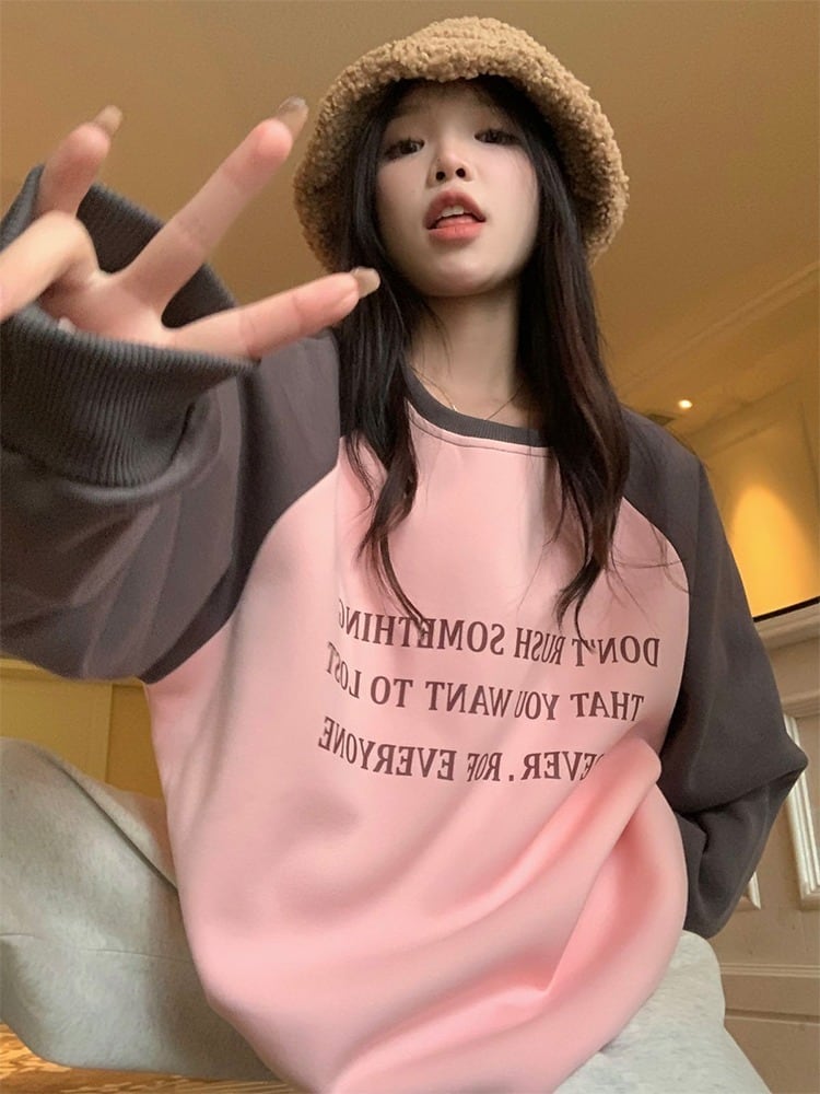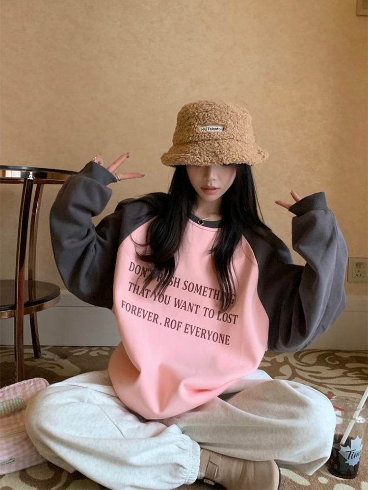 【韓国通販 dgo】ラグランスリーブ プルオーバー プリントスウェット ピンク(W3266)センス溢れるファッションitem
