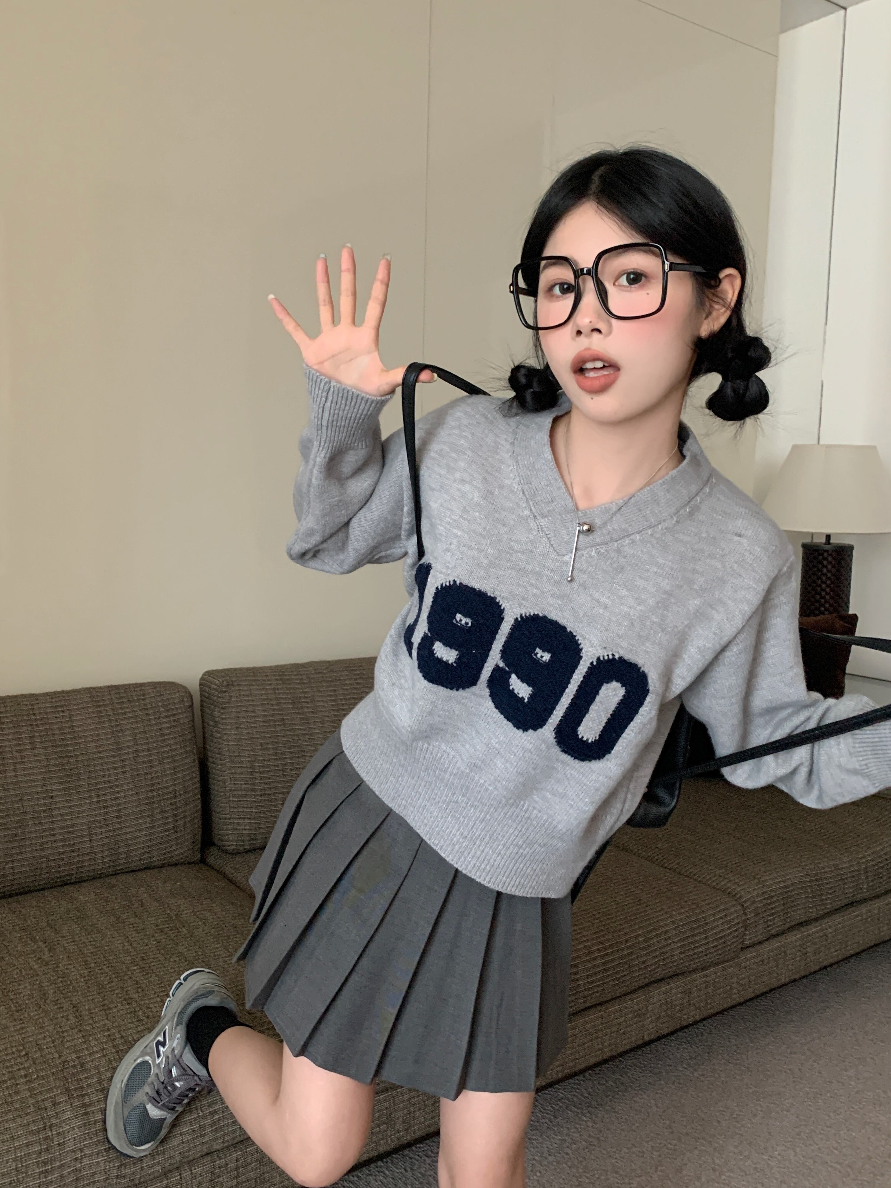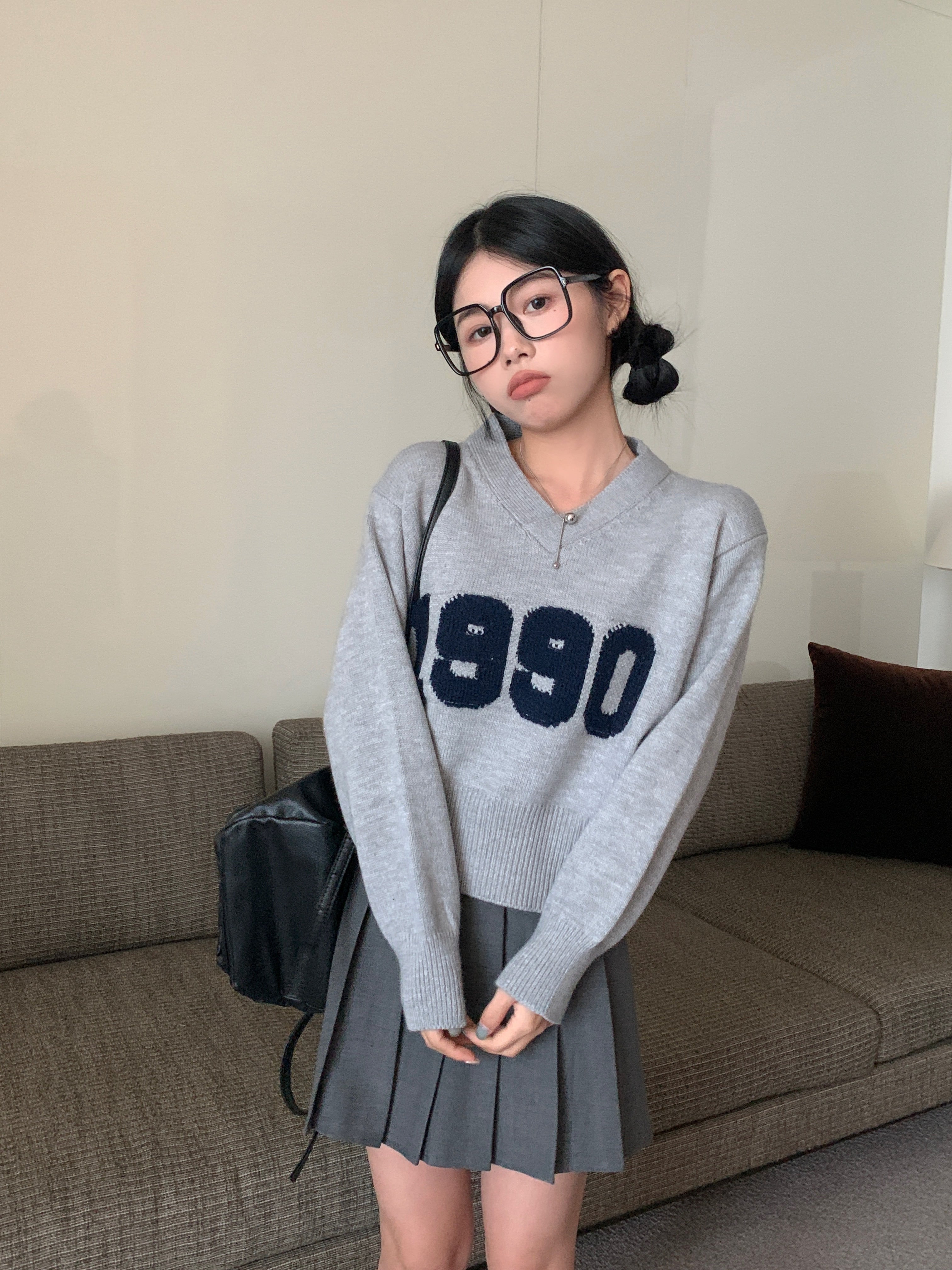 【韓国通販 dgo】2colors ナンバーロゴ ニット ホワイト/グレー(W3261)センス溢れるファッションitem