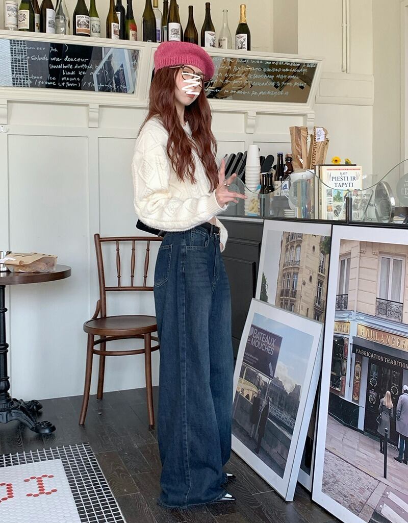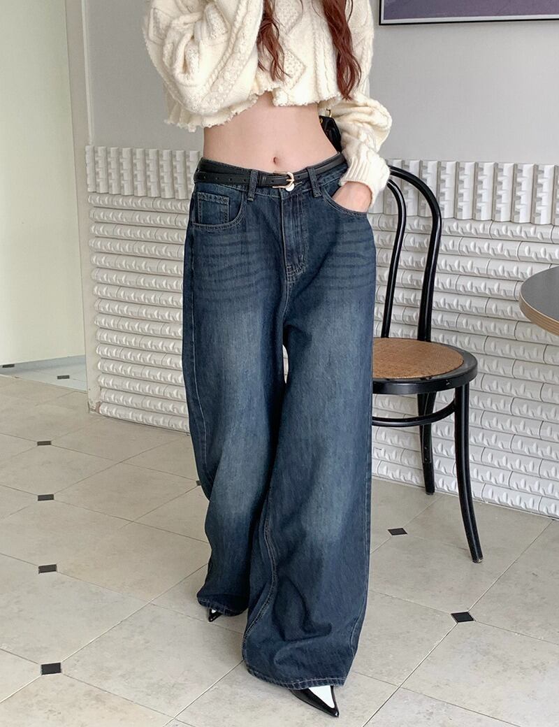 【韓国通販 dgo】ハイウエスト ワイドレッグ バギーパンツ ダークブルー(W3245)センス溢れるファッションitem