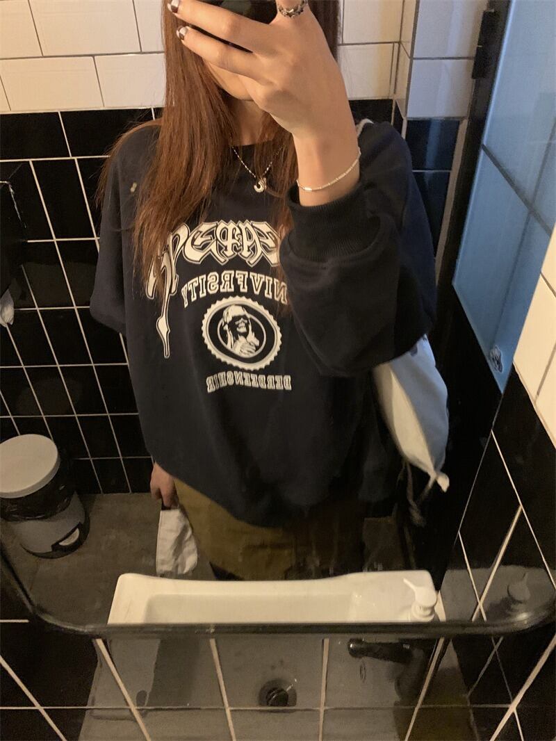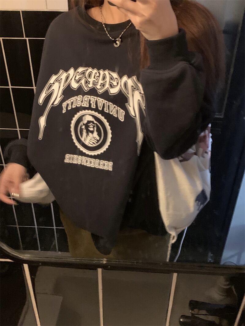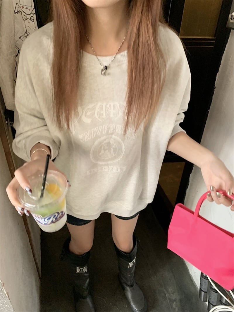 【韓国通販 dgo】2colors ベルベット レタースウェット ネイビー/ライトグレー(W3309)トレンドアイテム