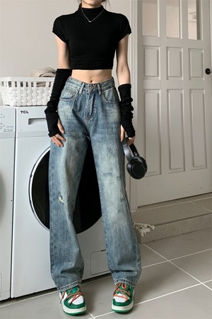 【韓国通販 dgo】ハイウエスト ワイドレッグ ジーンズ 2types(W3301)センス溢れるファッションitem