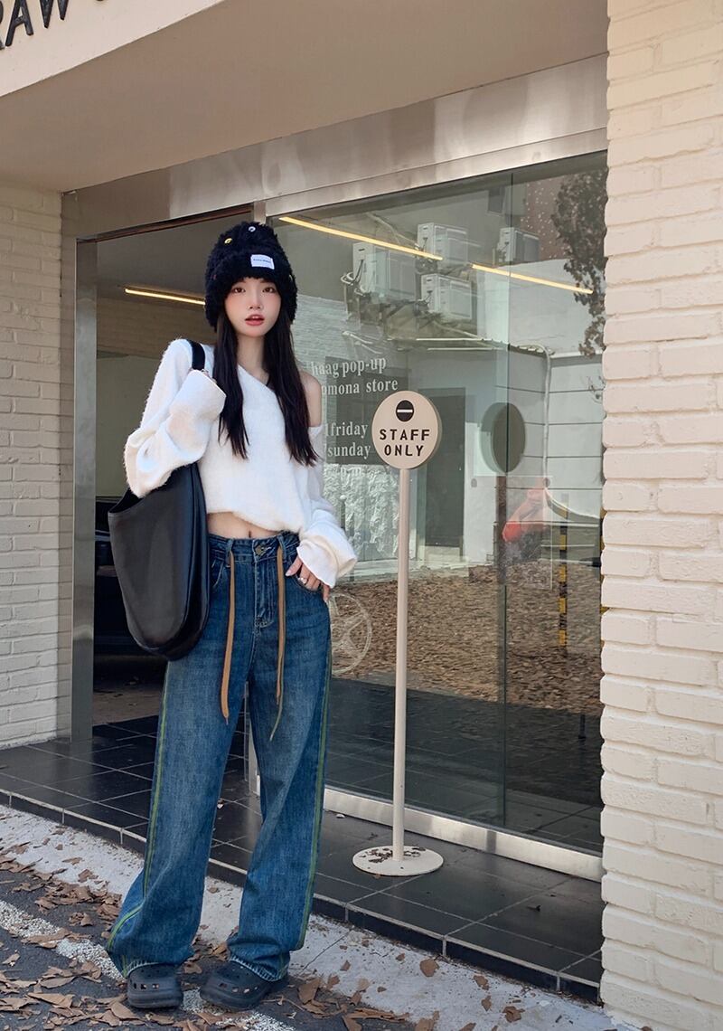 【韓国通販 dgo】2colors ストライプ ウォッシュド ワイドレッグパンツ ブルー/ブラック(W3341)