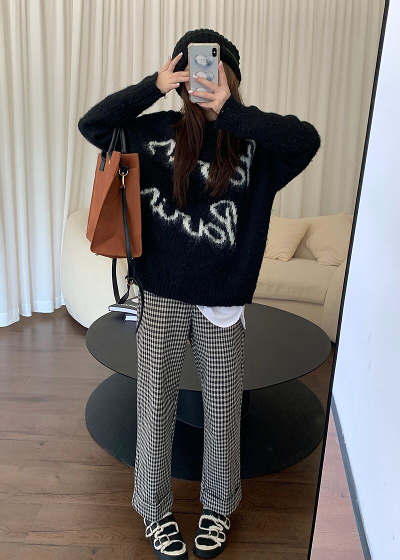 【韓国通販 dgo】グリッド ワイドレッグ ストレートパンツ(W3365)センス溢れるファッションitem