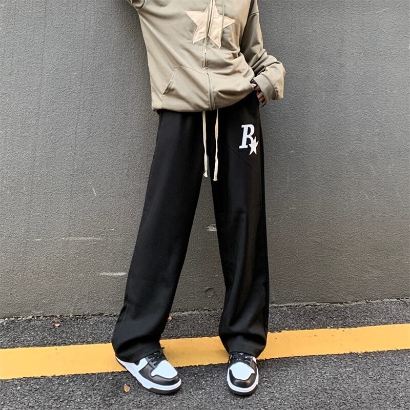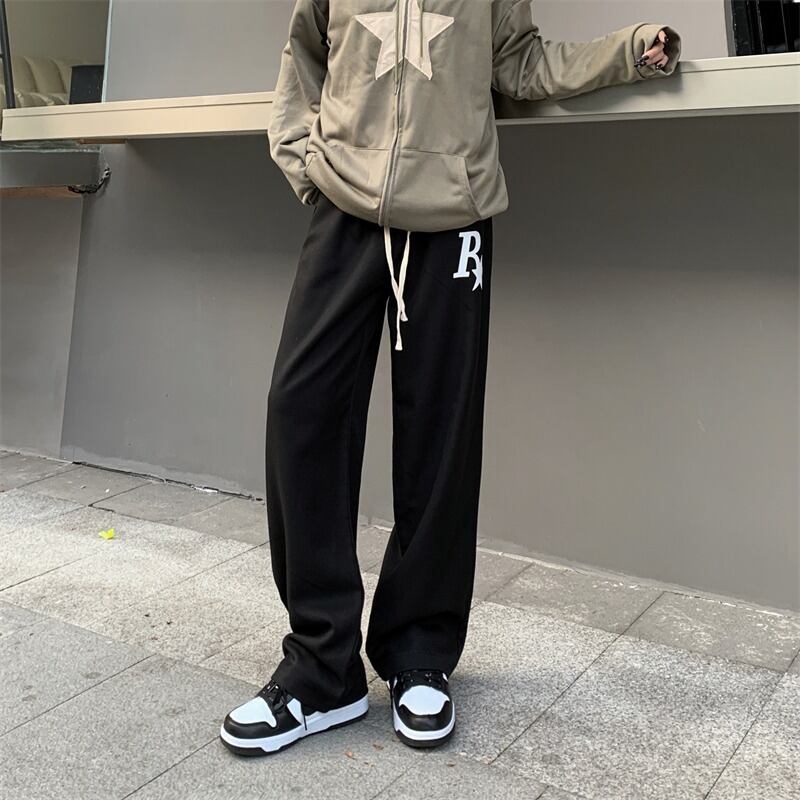 【韓国通販 dgo】ユニセックス ゆったり アルファベットロゴ ブラック パンツ(M3344)