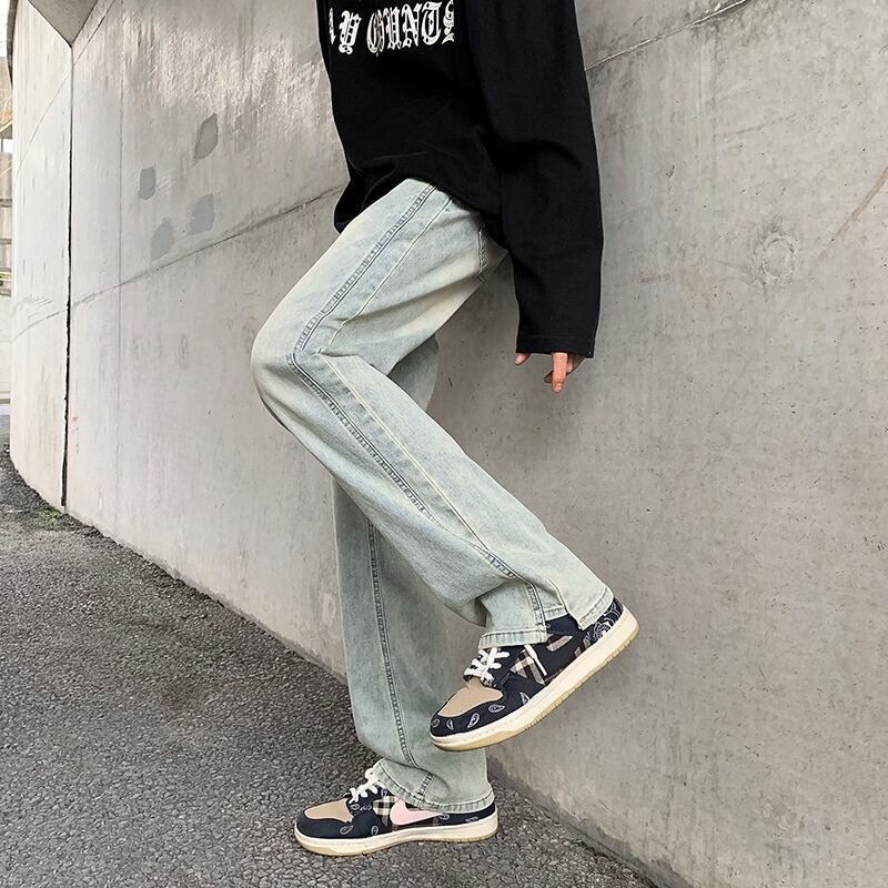 【韓国通販 dgo】ユニセックス レトロ ストレート ジーンズ イエローマッドブルー(M3392)
