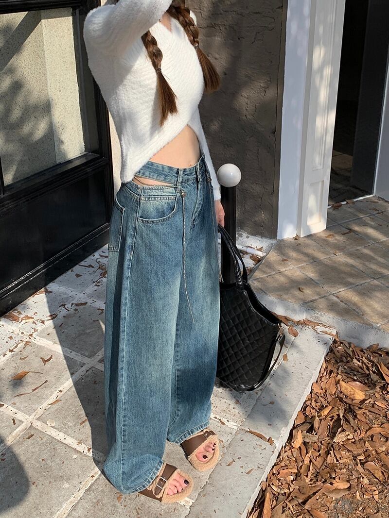 【韓国通販 dgo】レトロブルー ストレートジーンズ(W3449)トレンドアイテム