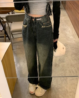 【韓国通販 dgo】ハイウエスト ダークブルー ワイドレッグジーンズ(W3425)センス溢れるファッションitem