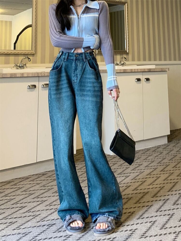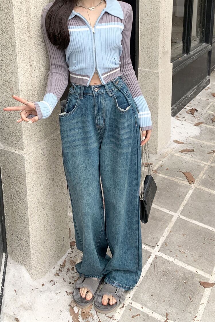 【韓国通販 dgo】ハイウエスト ストレート デニムジーンズ(W3423)センス溢れるファッションitem