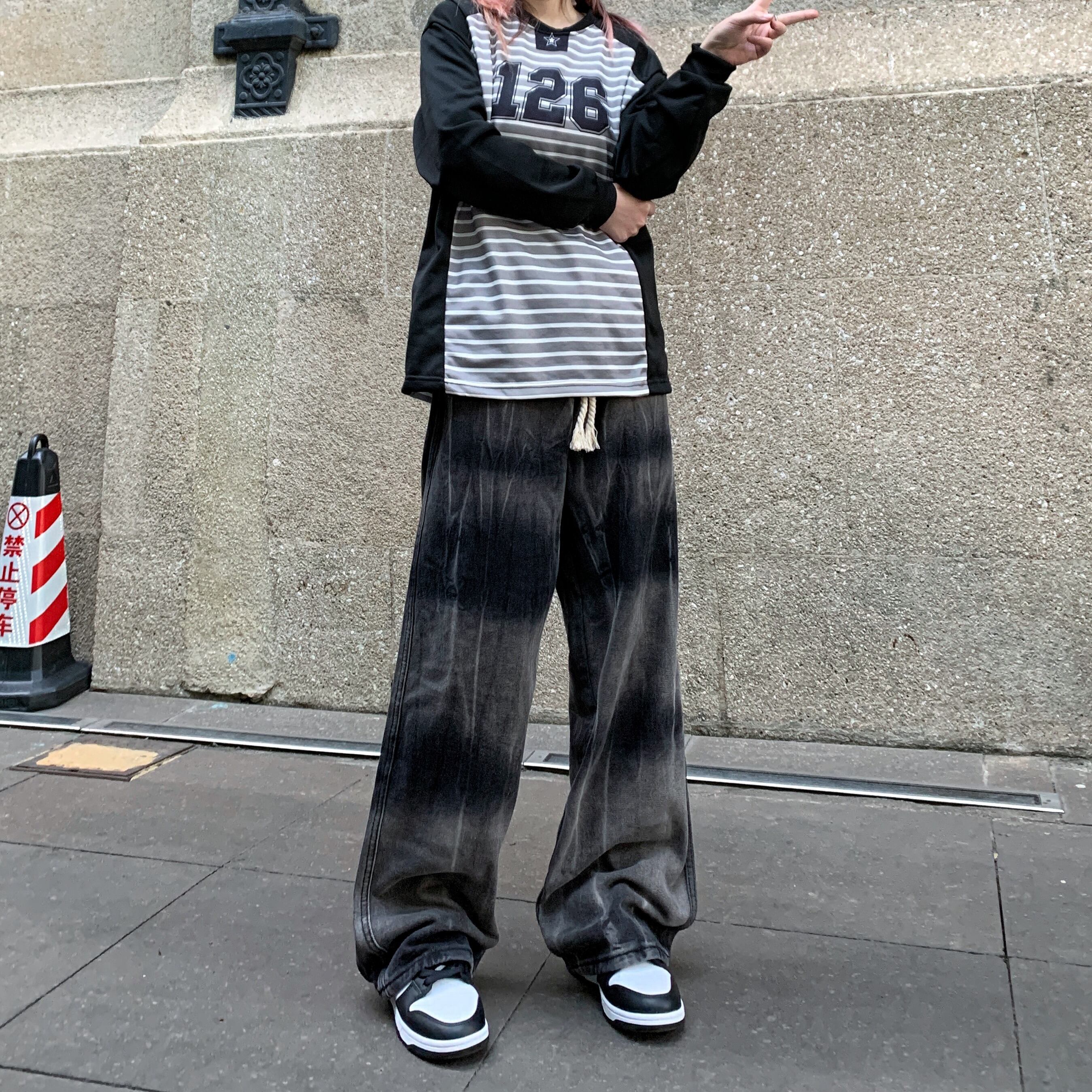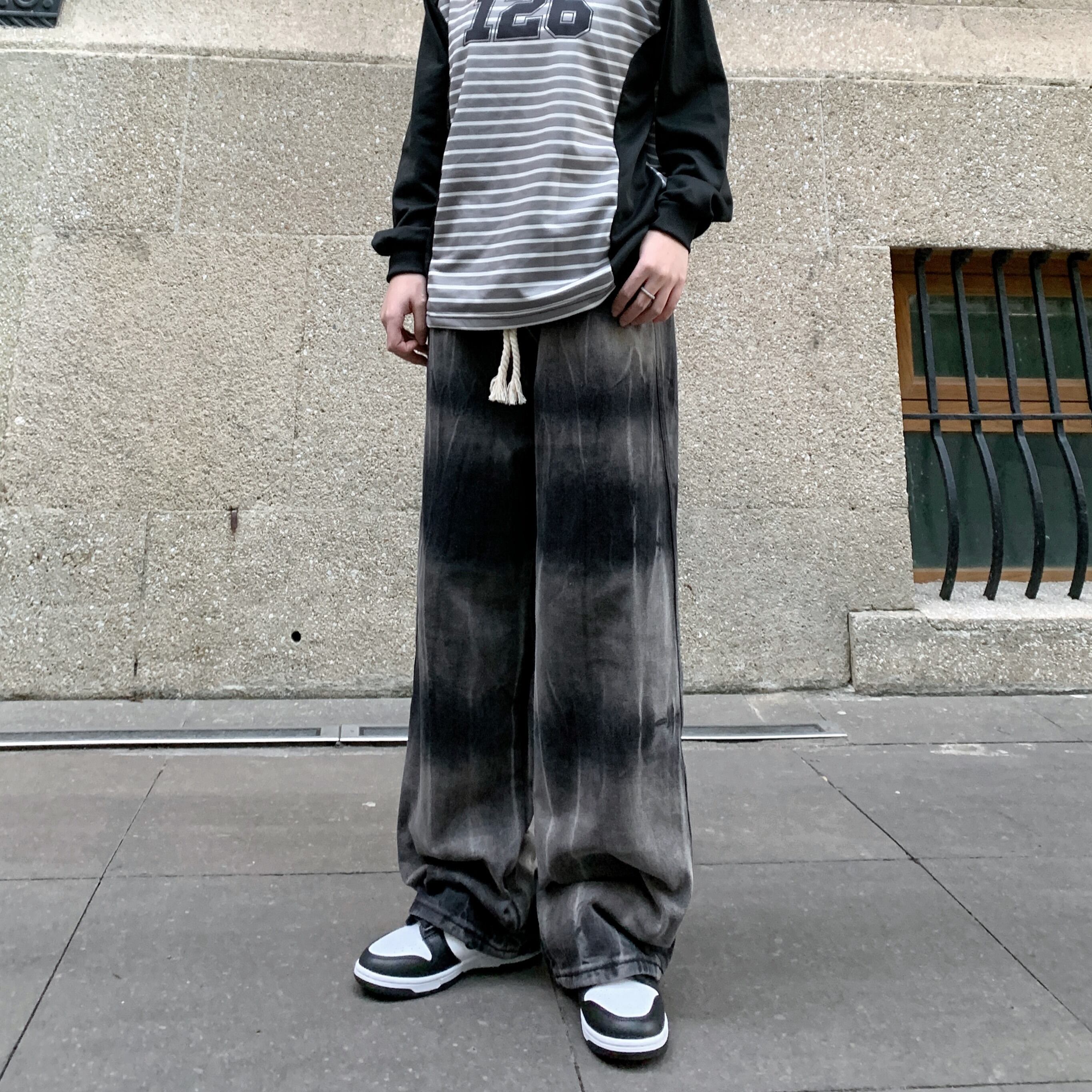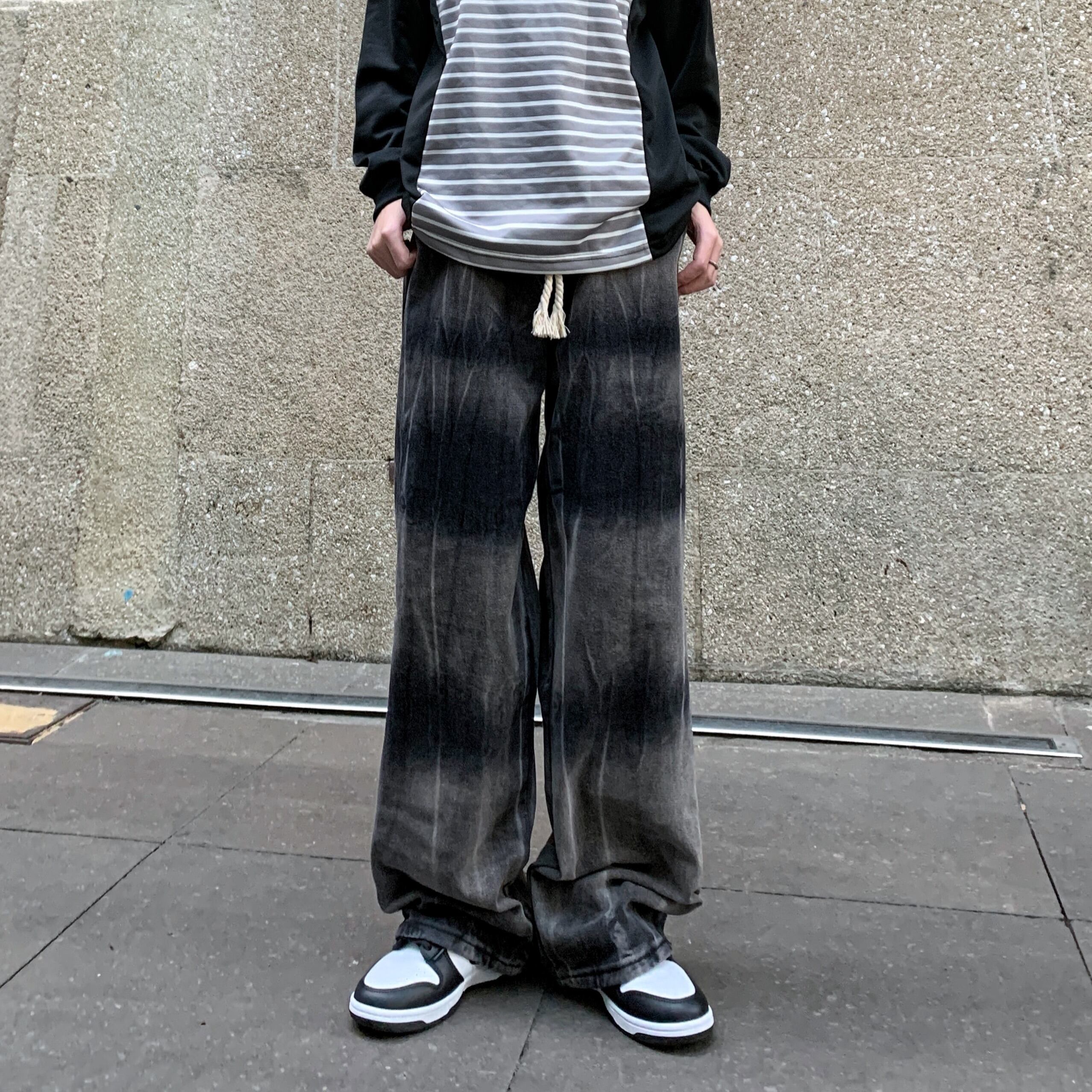 【韓国通販 dgo】ユニセックス タイダイ ウォッシュドブラックジーンズ(M3566)センス溢れるファッションitem