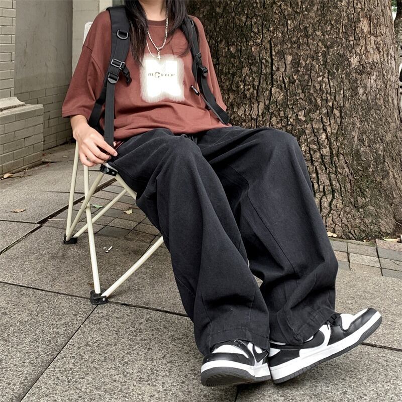 【韓国通販 dgo】ユニセックス 4colors ゆったり ストレートパンツ ブラック/ホワイト/カーキ/ダークブラウン(M3558)