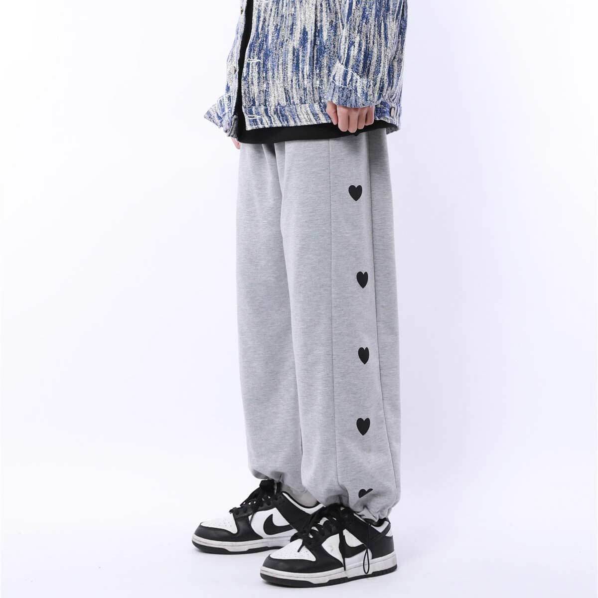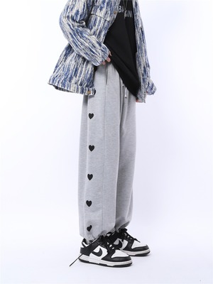 【韓国通販 dgo】ユニセックス 2colors ハート柄 ストレートパンツ グレー/ホワイト(M3552)