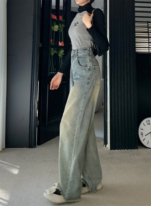 【韓国通販 dgo】ハイウエスト ワイドレッグ ヴィンテージジーンズ(W3545)センス溢れるファッションitem