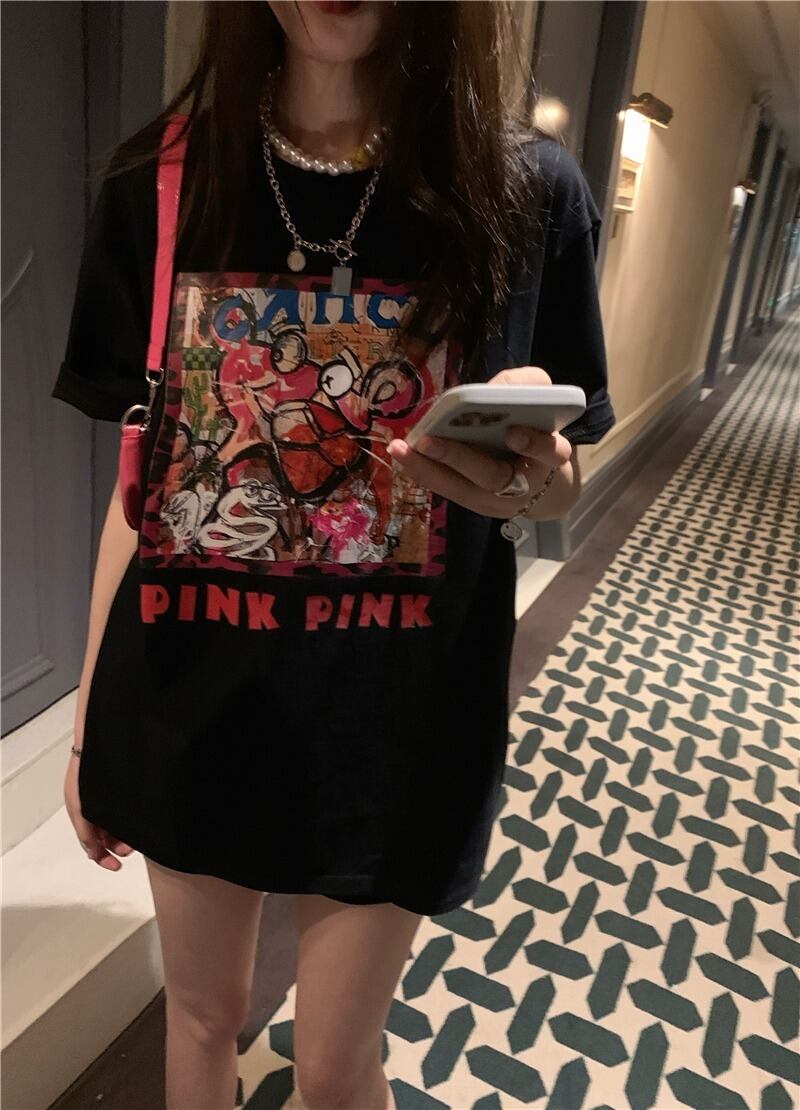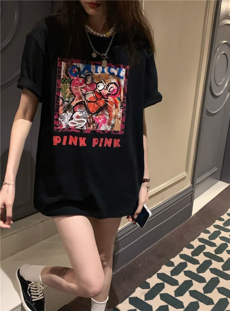 【韓国通販 dgo】2colors プリント Tシャツ ホワイト/ブラック(W3543)センス溢れるファッションitem