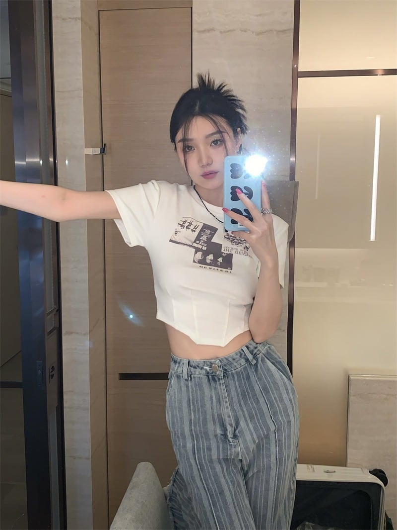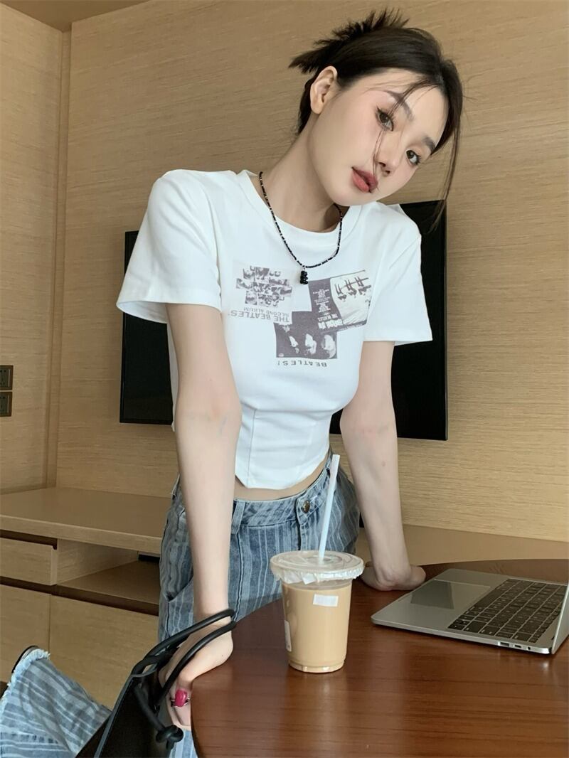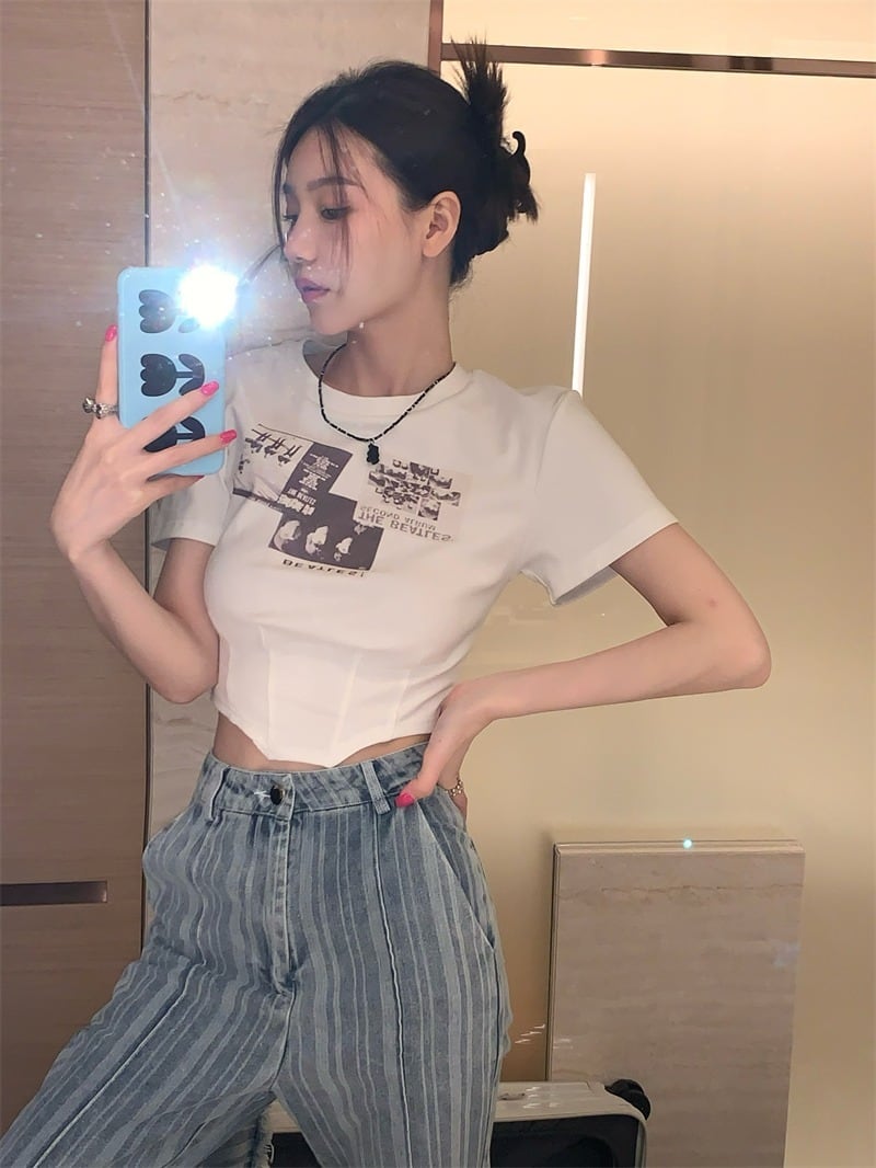 【韓国通販 dgo】レトロ プリント クロップドTシャツ ヴィンテージホワイト(W3539)トレンドアイテム