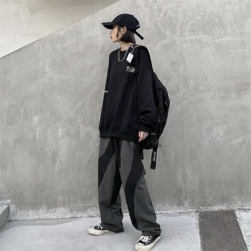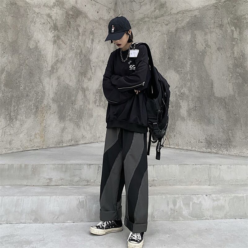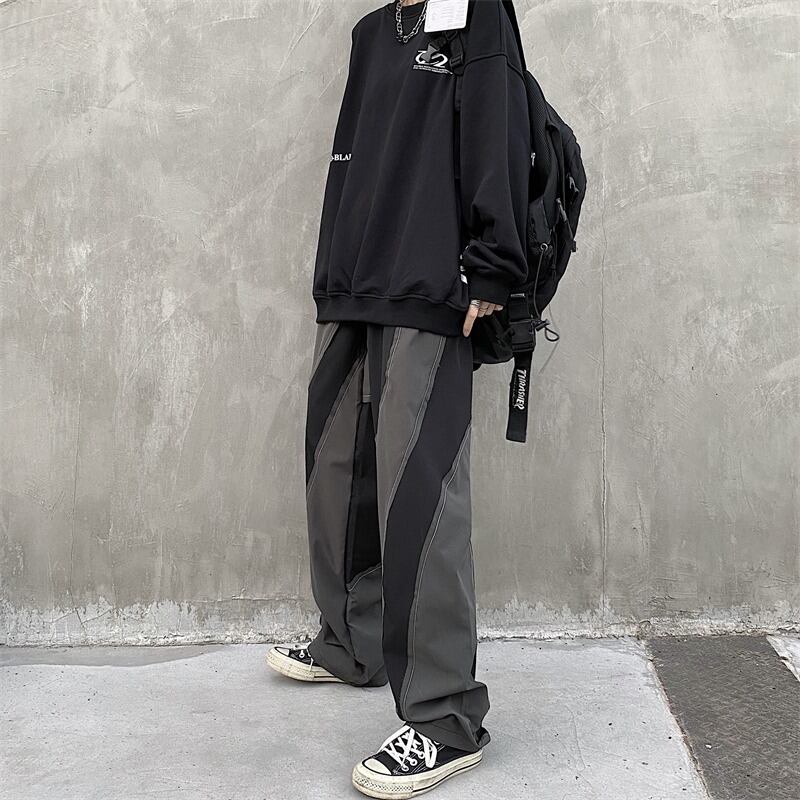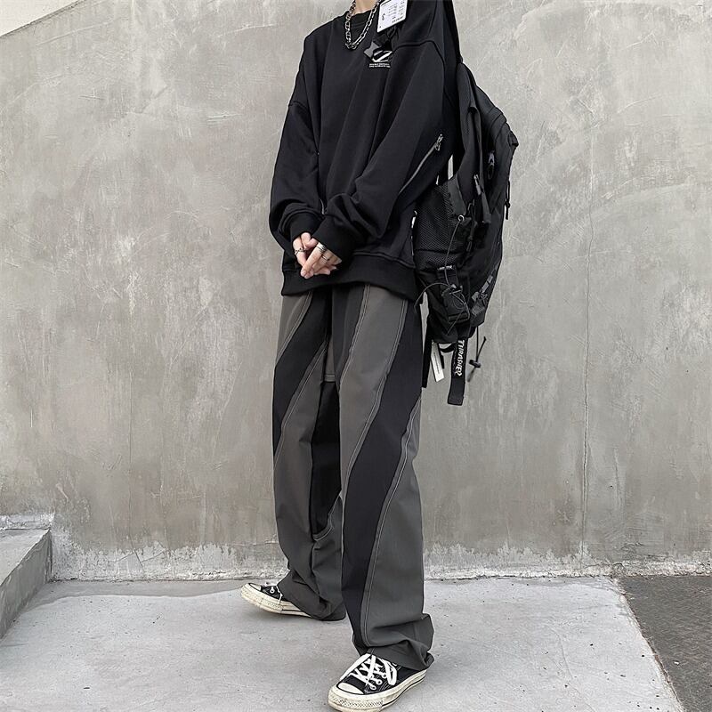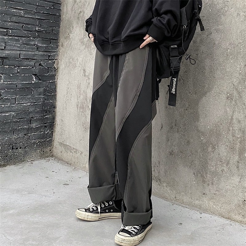【韓国通販 dgo】ユニセックス ストレートパンツ ブラック&グレー(M3532)