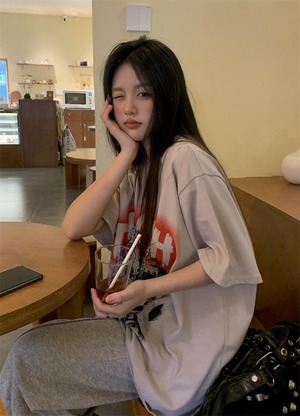 【韓国通販 dgo】ラウンドネック ミドル丈 プリントTシャツ(W3525)センス溢れるファッションitem