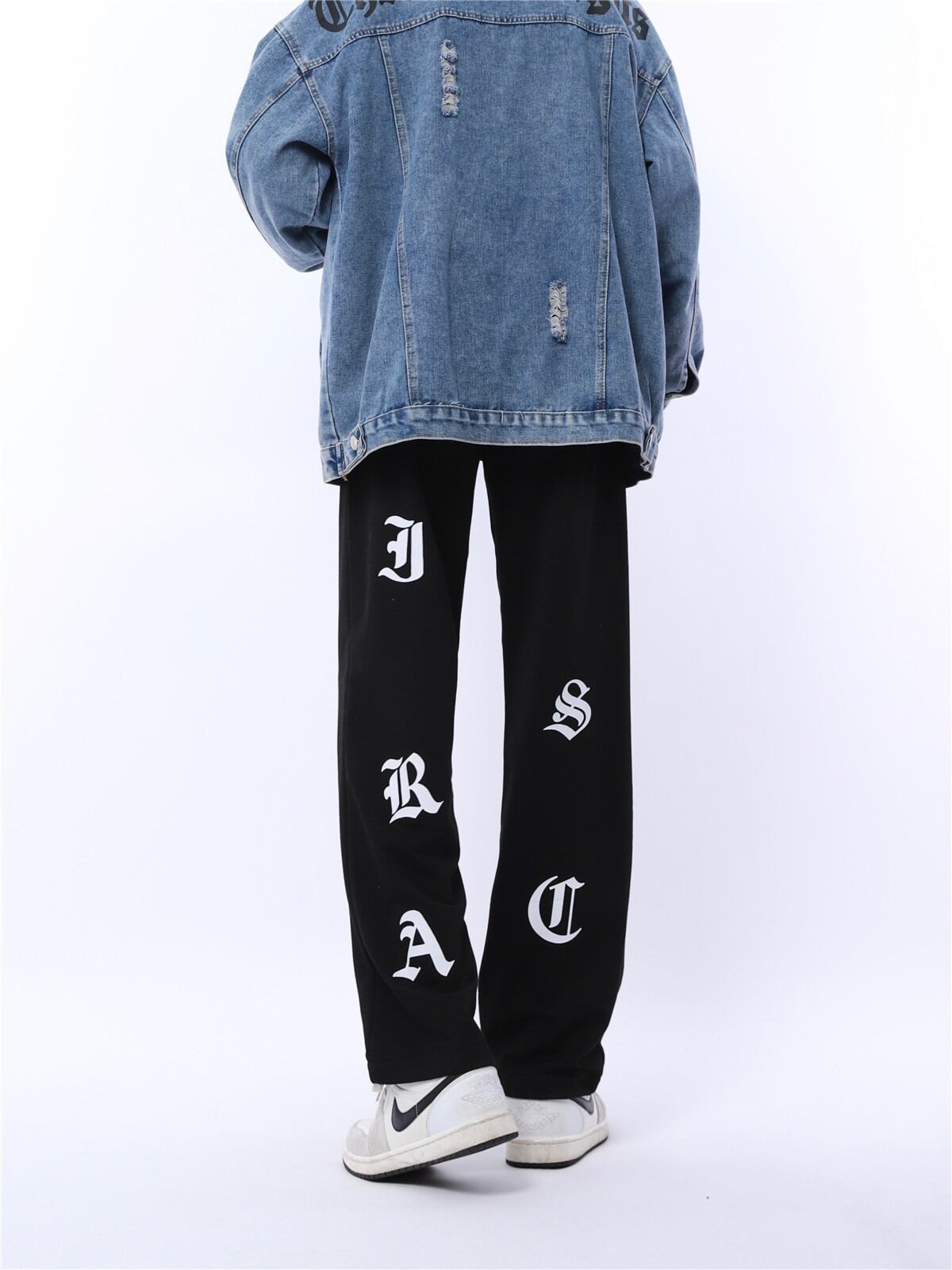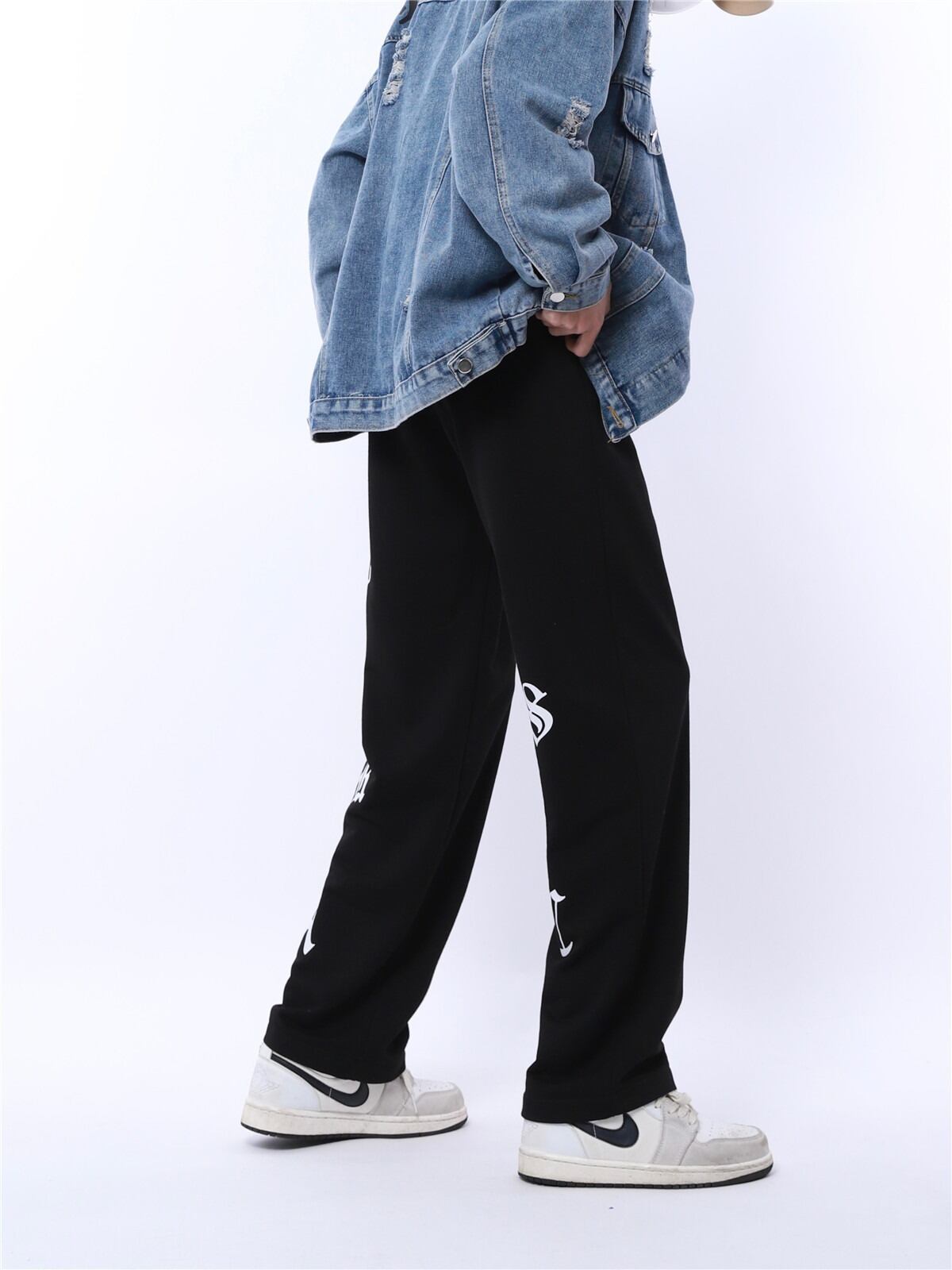 【韓国通販 dgo】ユニセックス ロゴ入り ブラック ストレートパンツ(M3524)