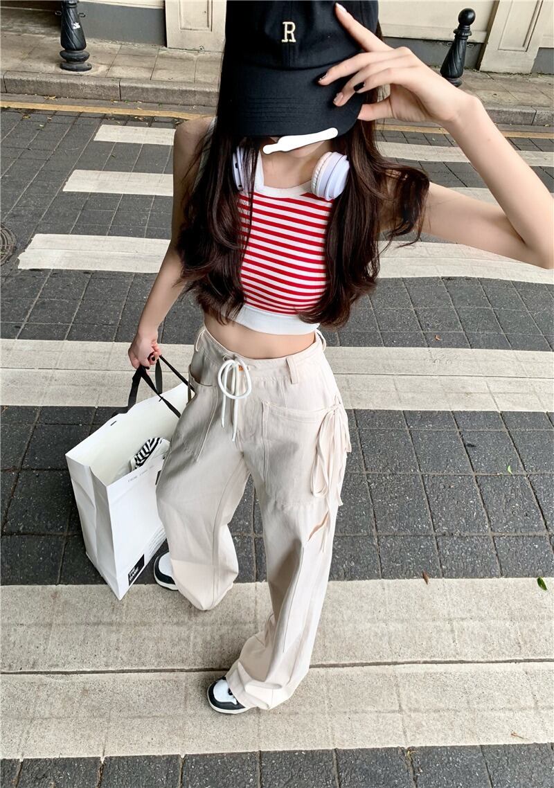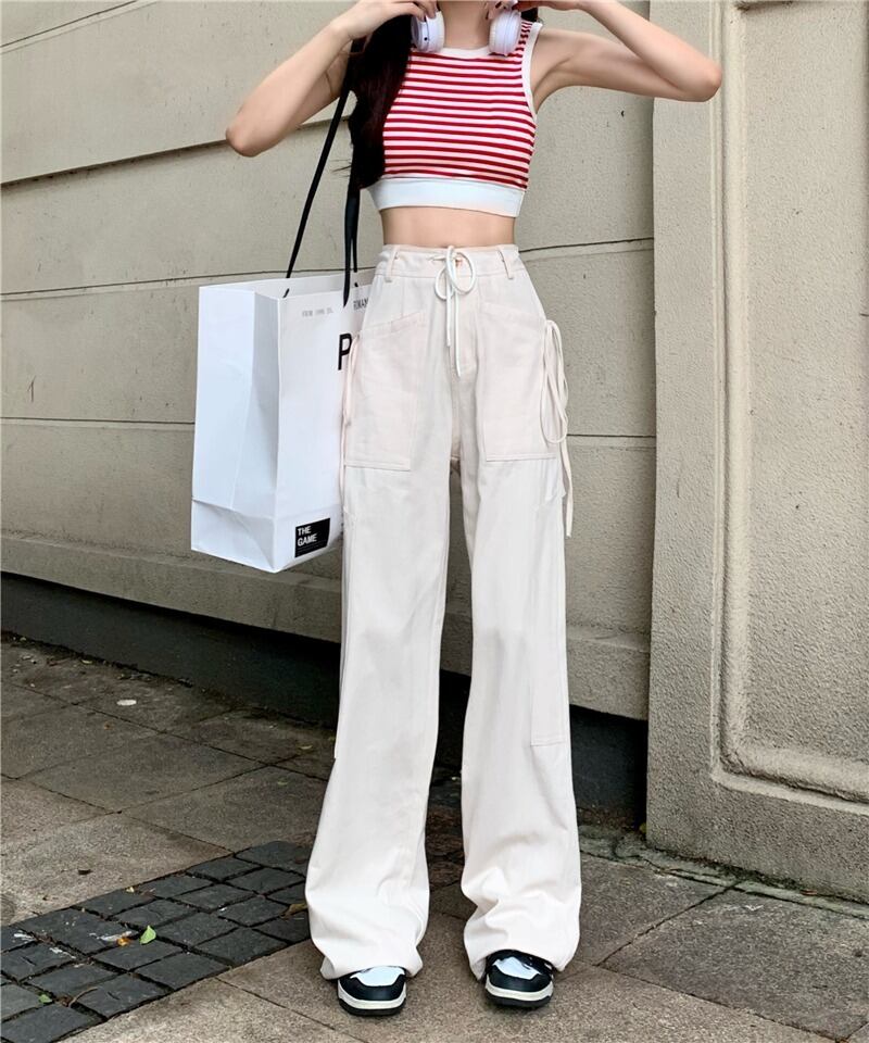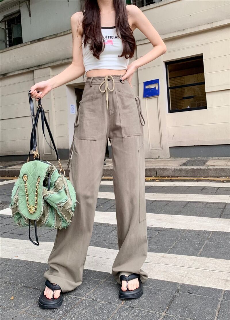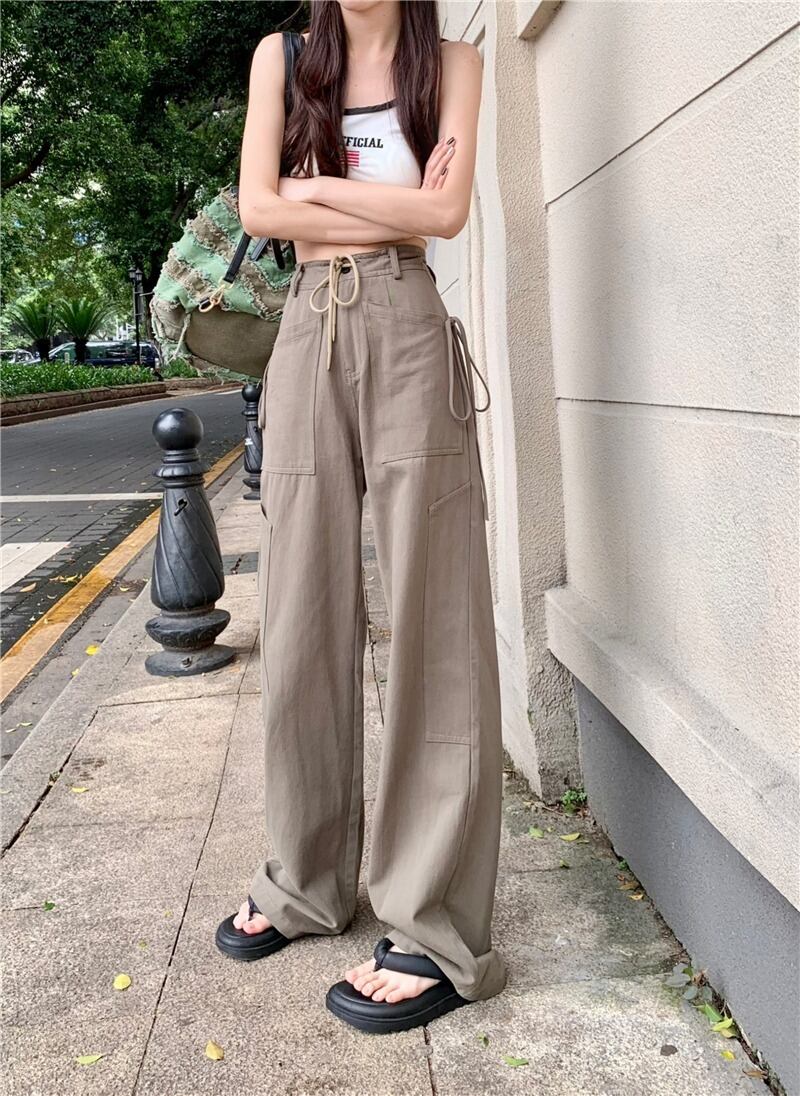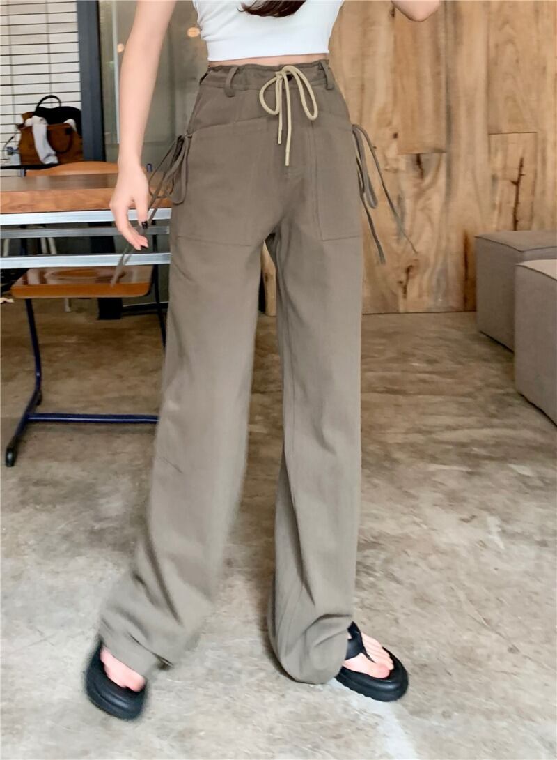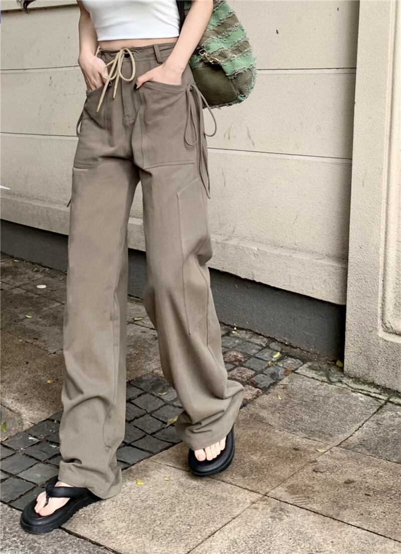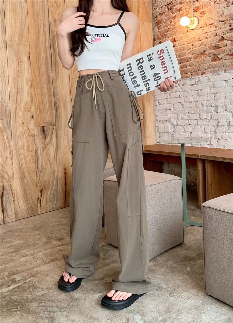 【韓国通販 dgo】2colors ハイウエスト ワイドレッグパンツ アーミーグリーン/アイボリー(W3517)トレンドアイテム