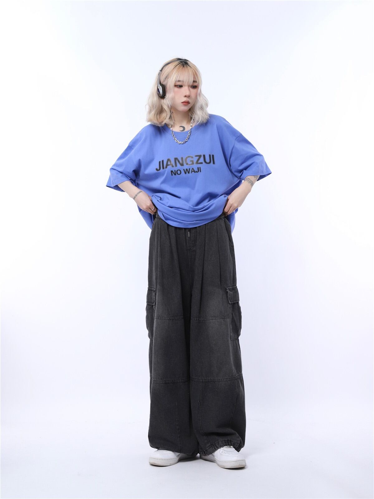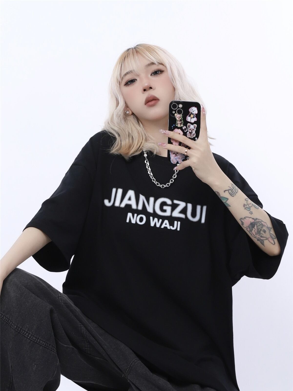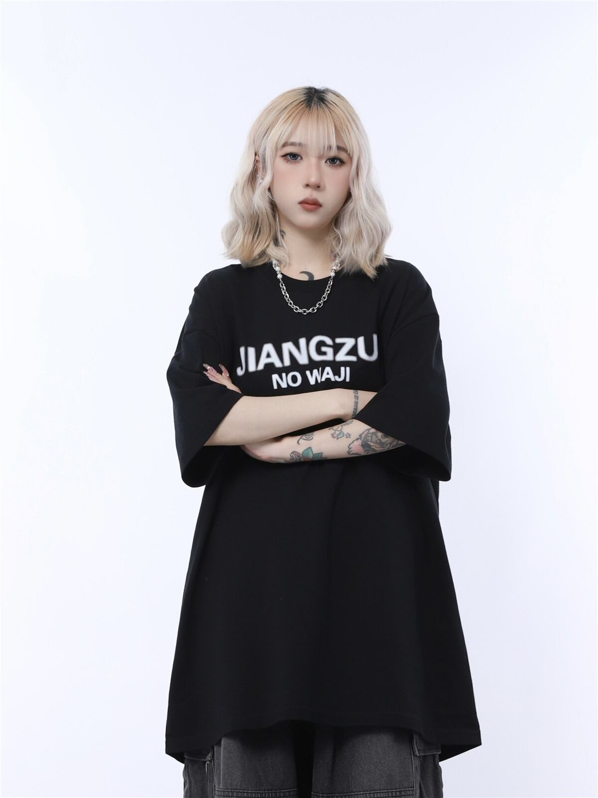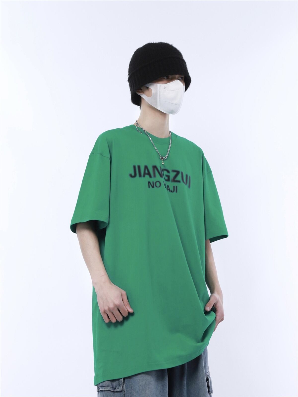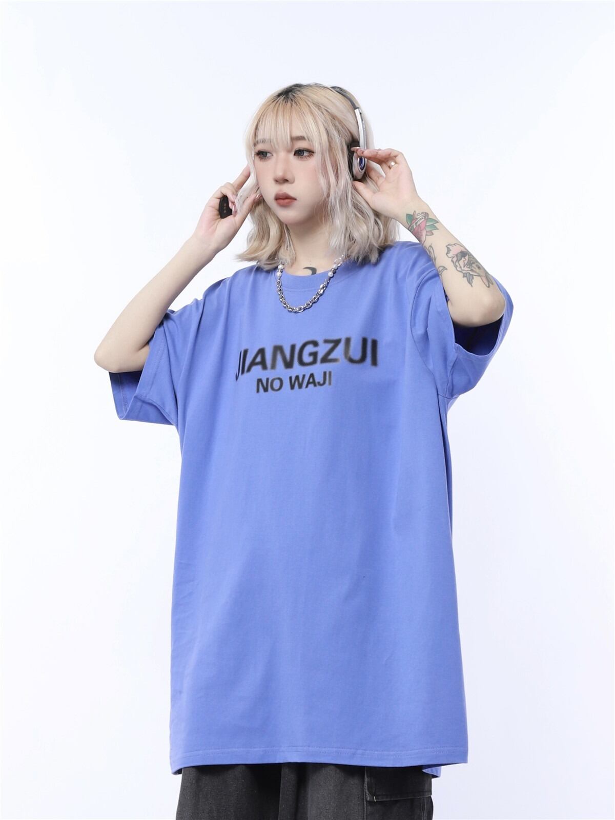 【韓国通販 dgo】ユニセックス 2colors ゆったり レタープリントTシャツ ブラック/ダークグリーン/ブルーパープル/ホワイト(M3622)