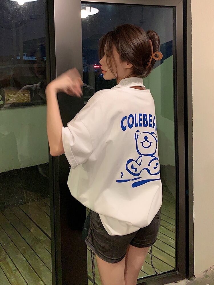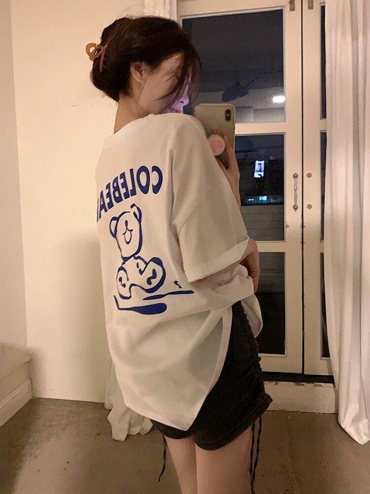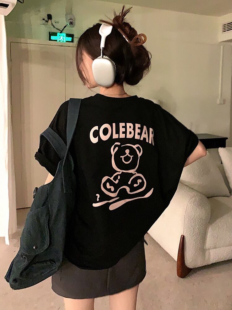【韓国通販 dgo】2colors ベアプリントTシャツ ホワイト/ブラック(W3617)トレンドアイテム