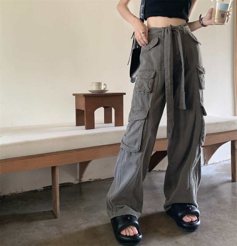 【韓国通販 dgo】ハイウエスト カジュアル カーゴパンツ グレー(W3581)