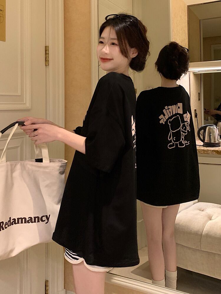 【韓国通販 dgo】2colors アニマルプリンTシャツ ブラック/ホワイト(W3579)トレンドアイテム