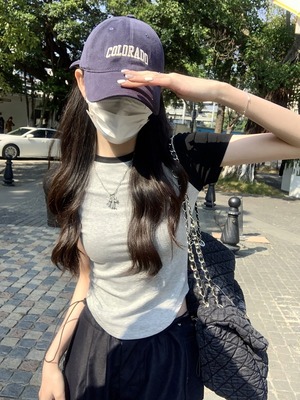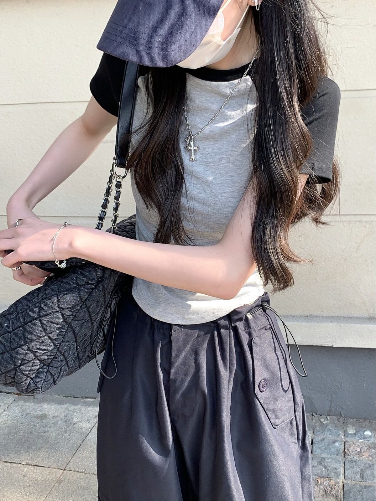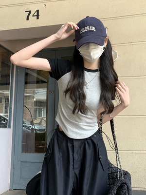 【韓国通販 dgo】2colors スリムリンガーTシャツ ホワイト/グレー(W3677)トレンドアイテム