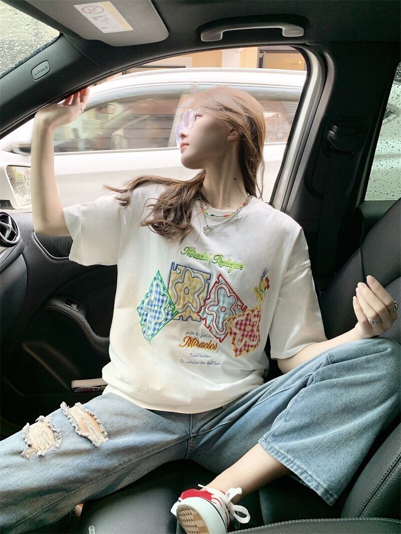 【韓国通販 dgo】ミドル丈 プリントTシャツ(W3667)トレンドアイテム