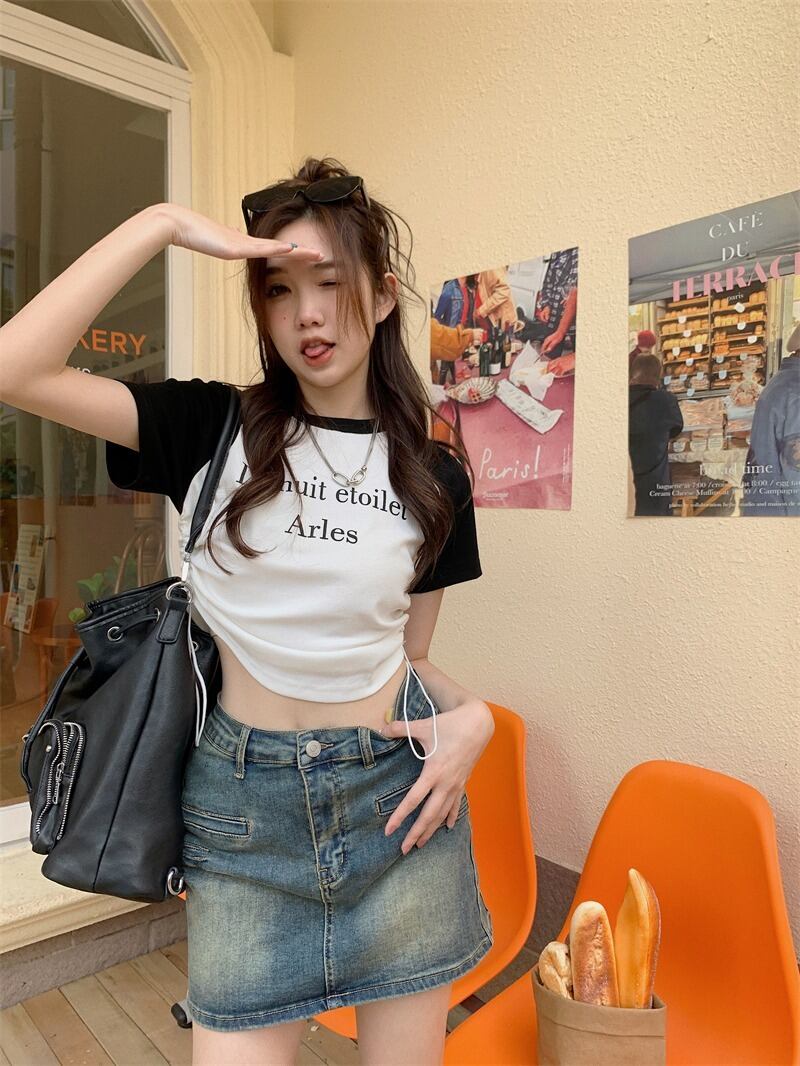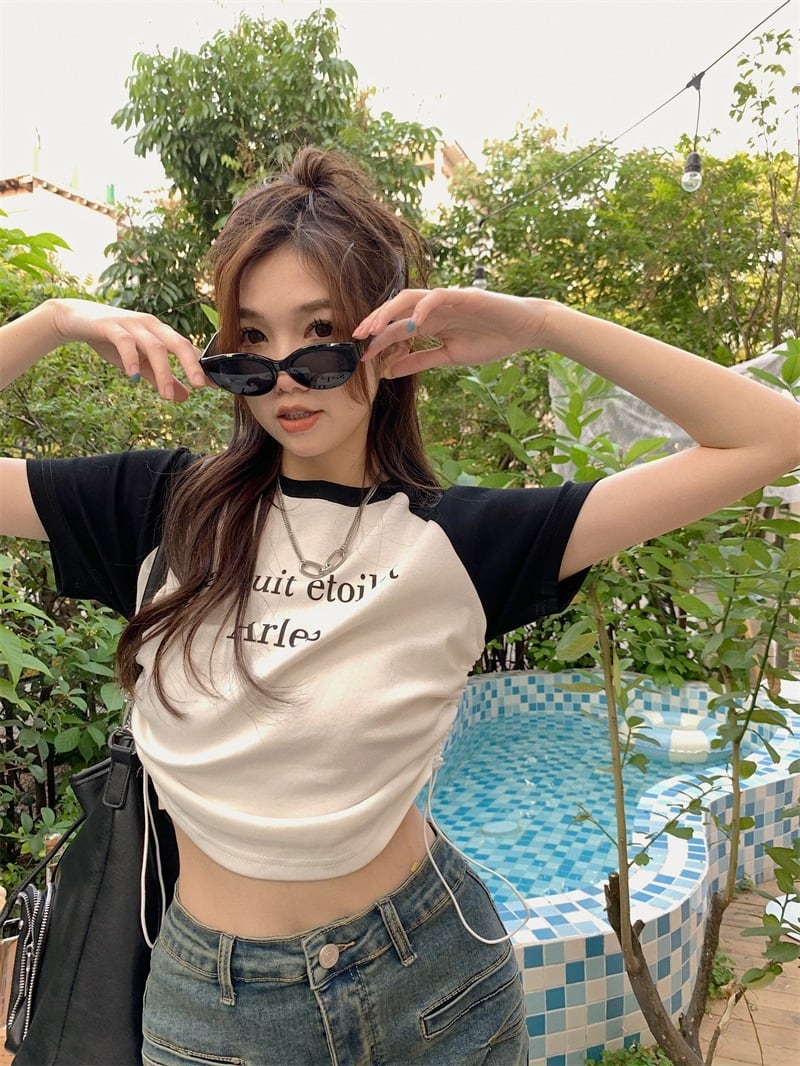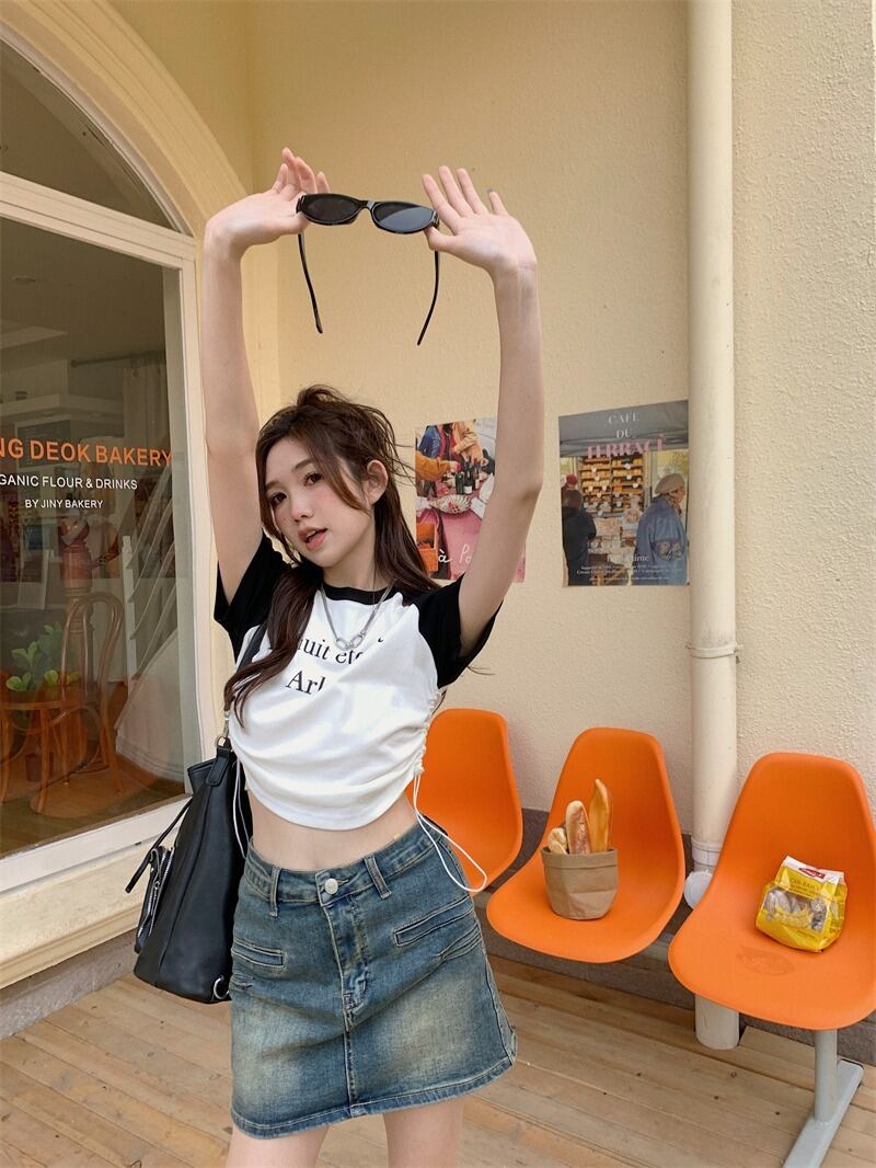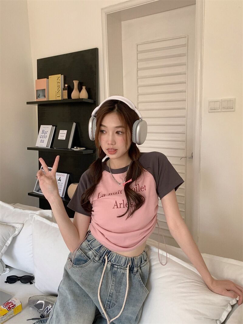 【韓国通販 dgo】2colors クロップド リンガーTシャツ ピンク/ホワイト(W3663)センス溢れるファッションitem