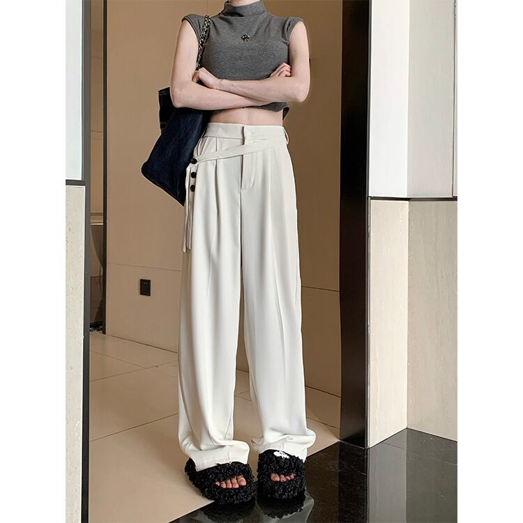 【韓国通販 dgo】4colors ワイドレッグ カジュアルパンツ ホワイト/ブラック/ピンク/グレー(M3644)