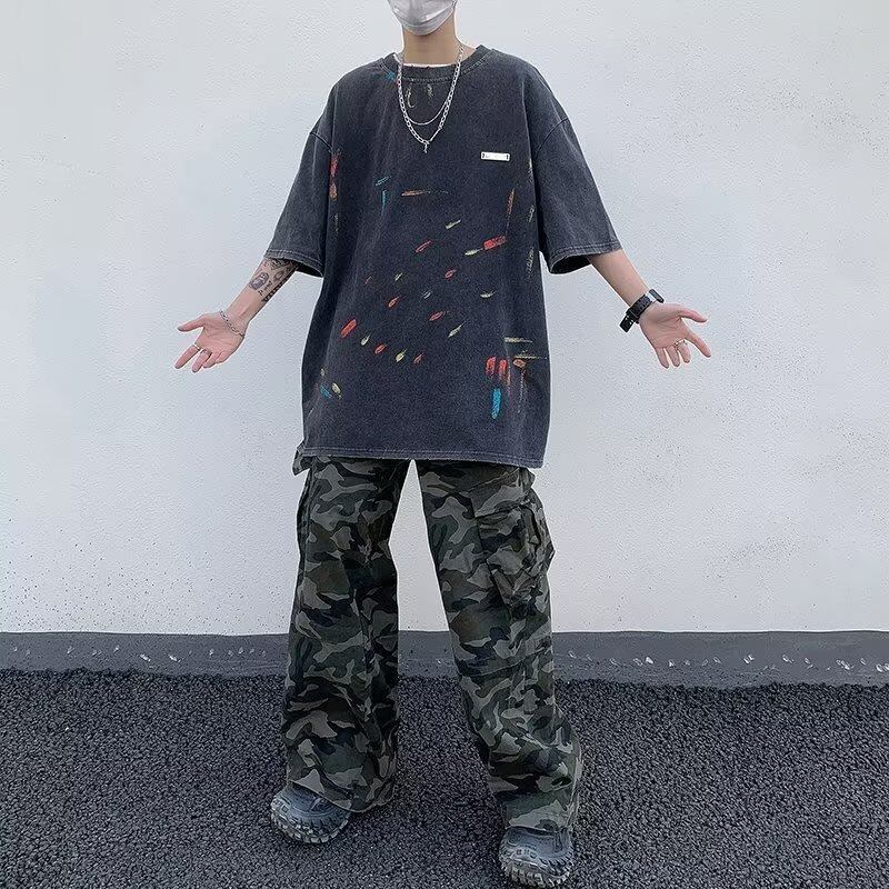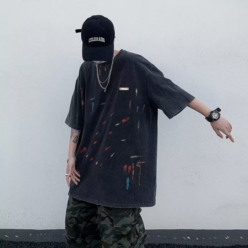 【韓国通販 dgo】ユニセックス 2colors ウォッシュドプリントTシャツ ブラック/グリーン(M3632)