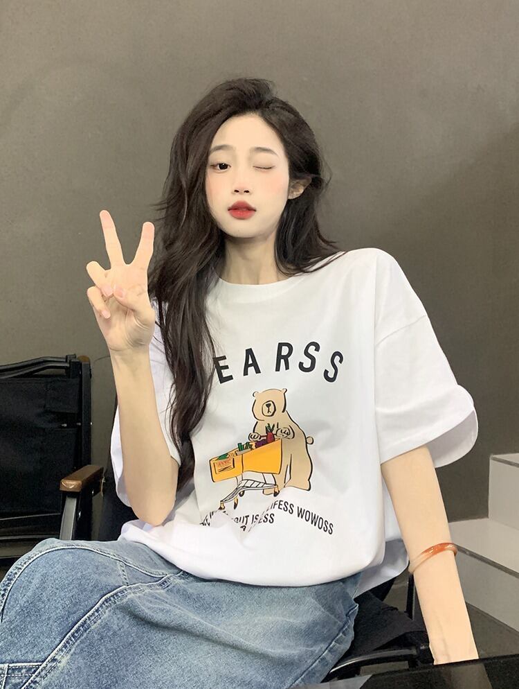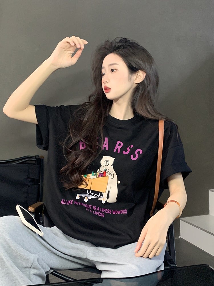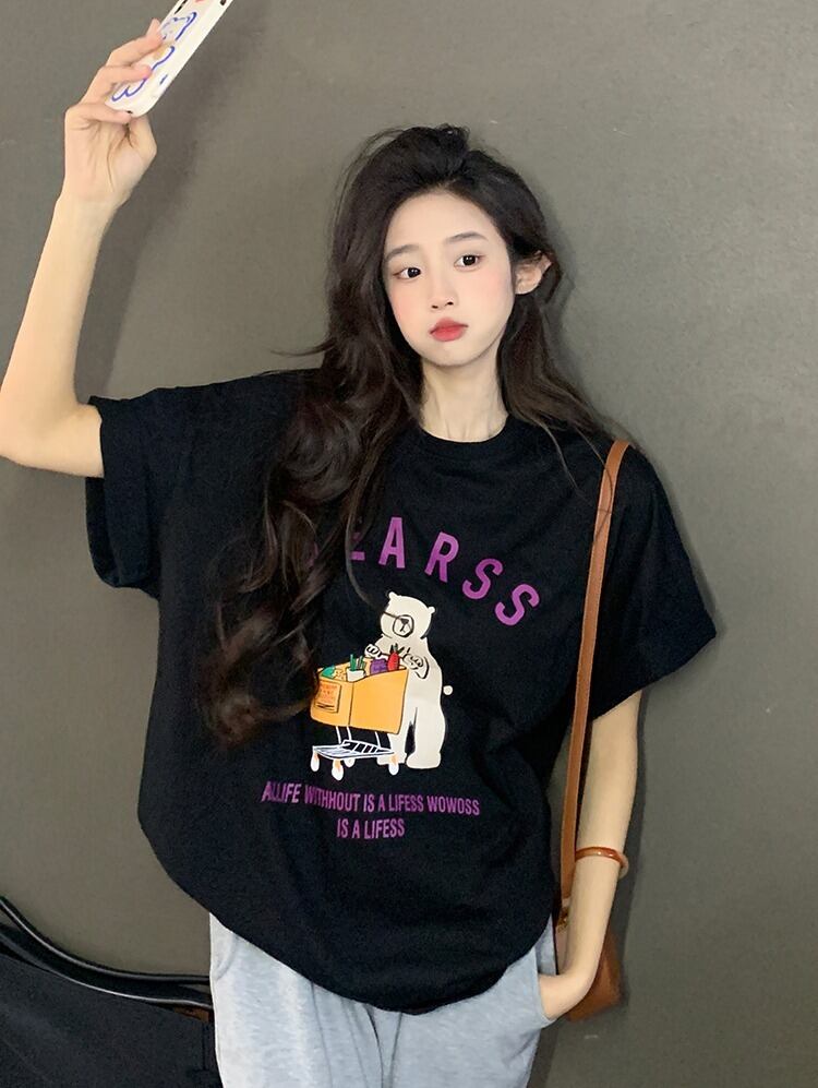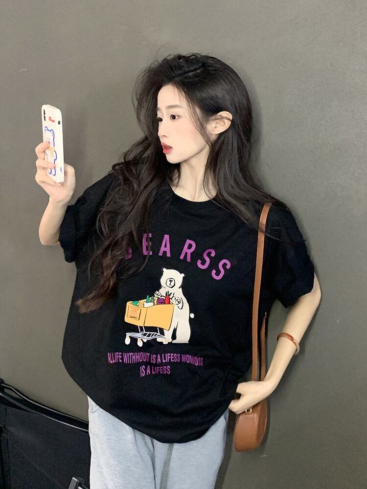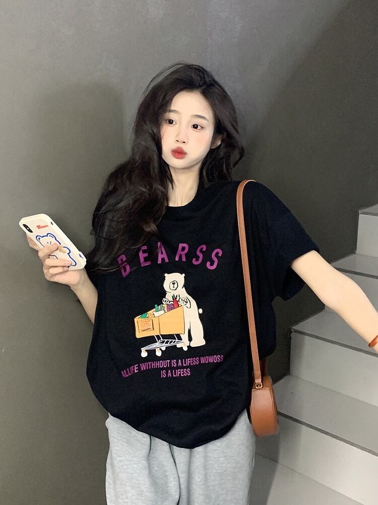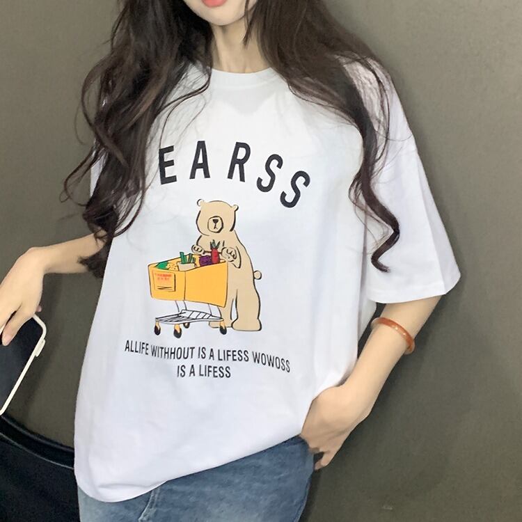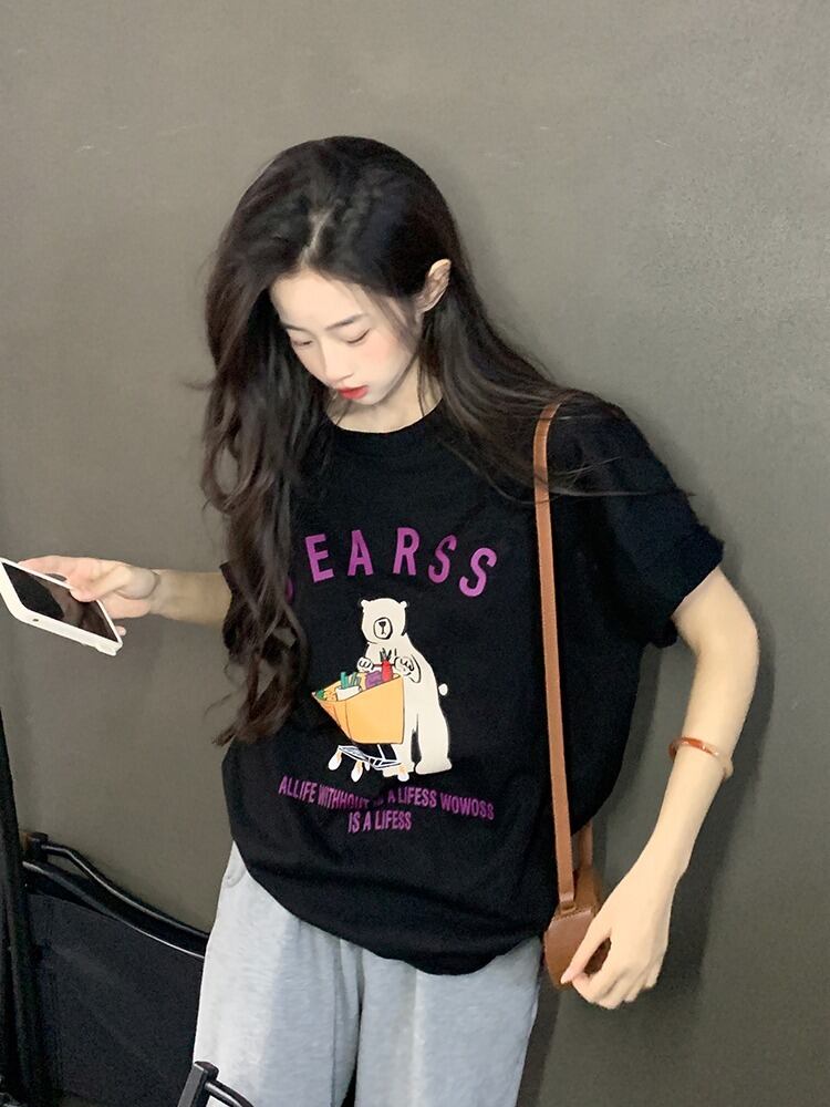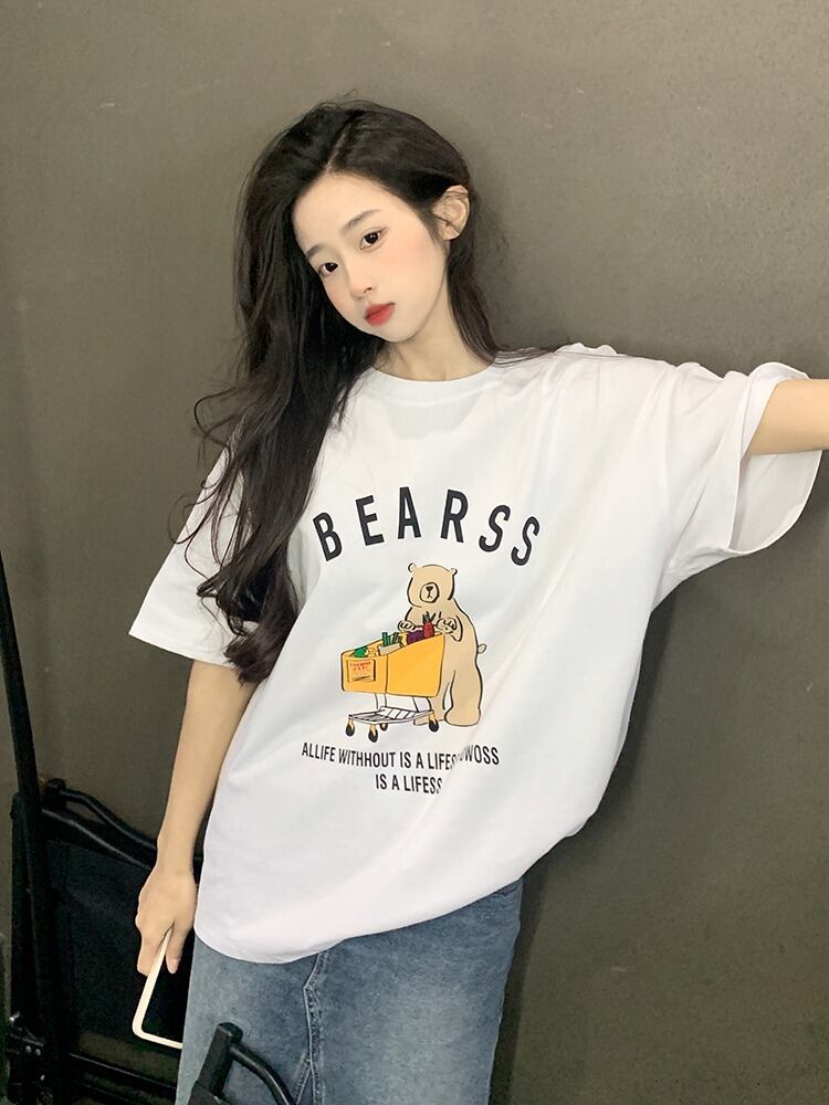 【韓国通販 dgo】2colors ベアプリントTシャツ ホワイト/ブラック(W3629)トレンドアイテム