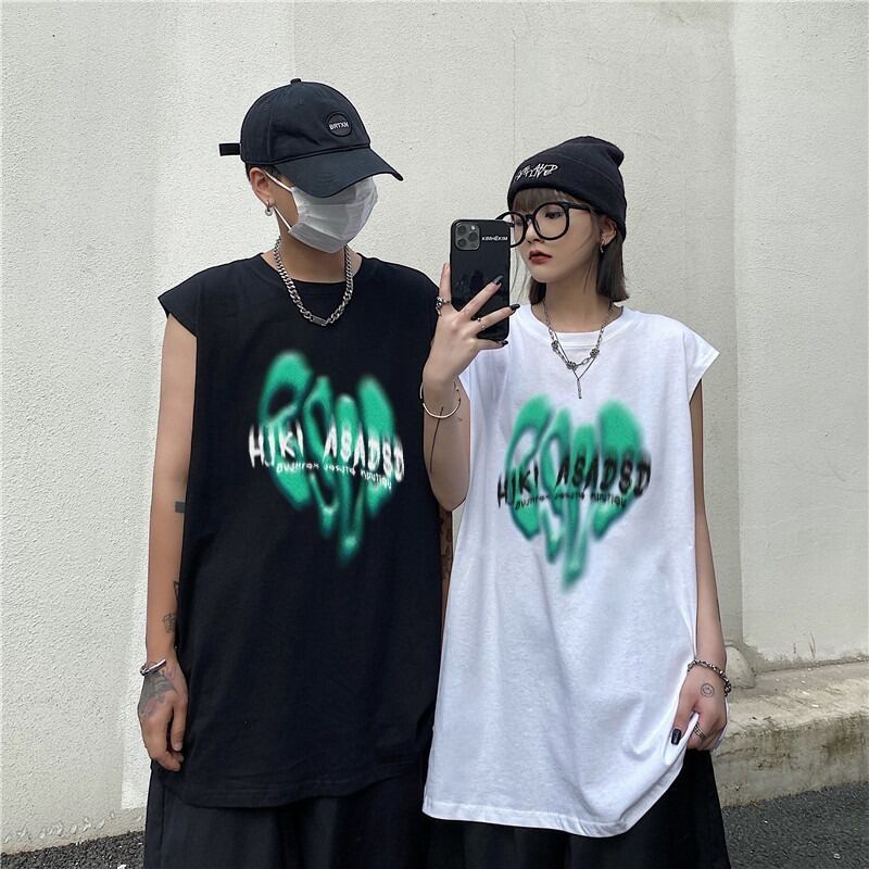 【韓国通販 dgo】ユニセックス 2colors スリーブレスプリントシャツ ブラック/ホワイト(M3626)センス溢れるファッションitem