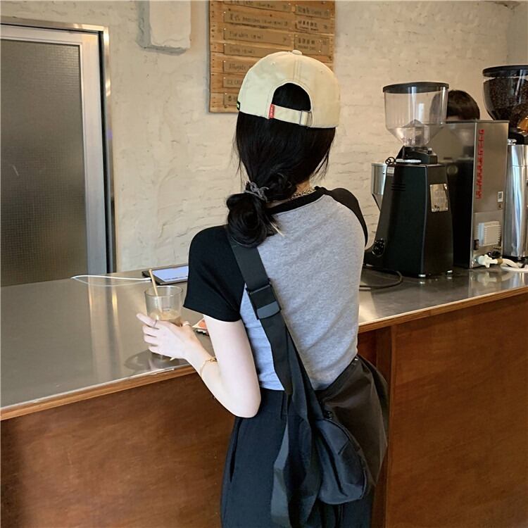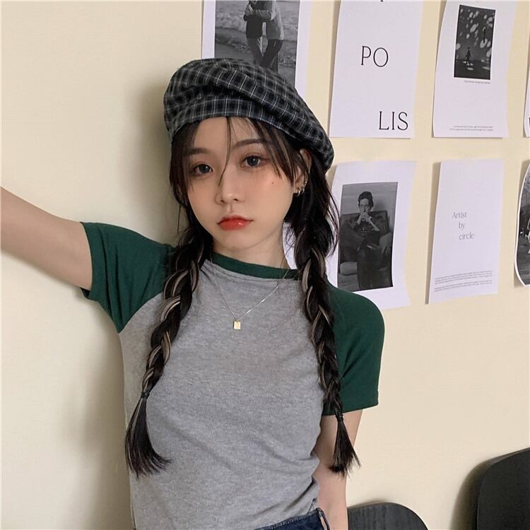 【韓国通販 dgo】3colors クロップド リンガーTシャツ グリーン/ブラック/ブルー(W3705)センス溢れるファッションitem