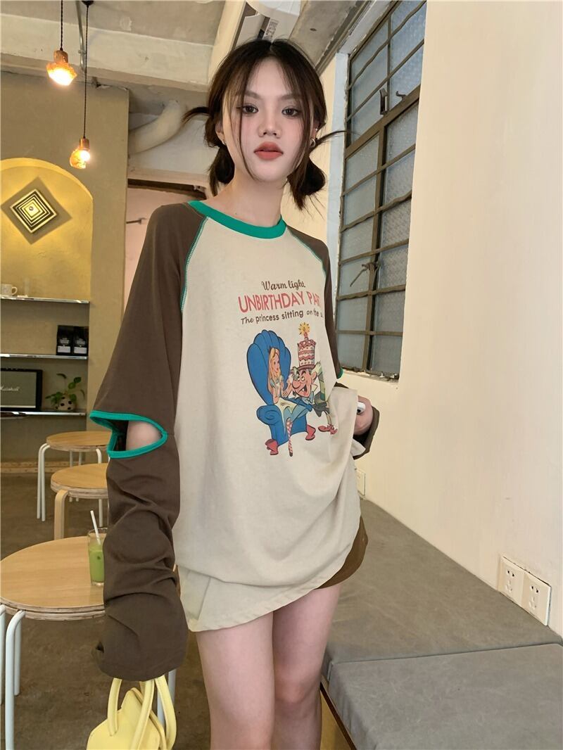 【韓国通販 dgo】ラウンドネック ミドル丈プリント ロンT(W3689)トレンドアイテム