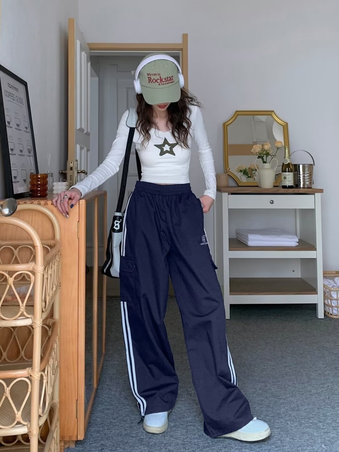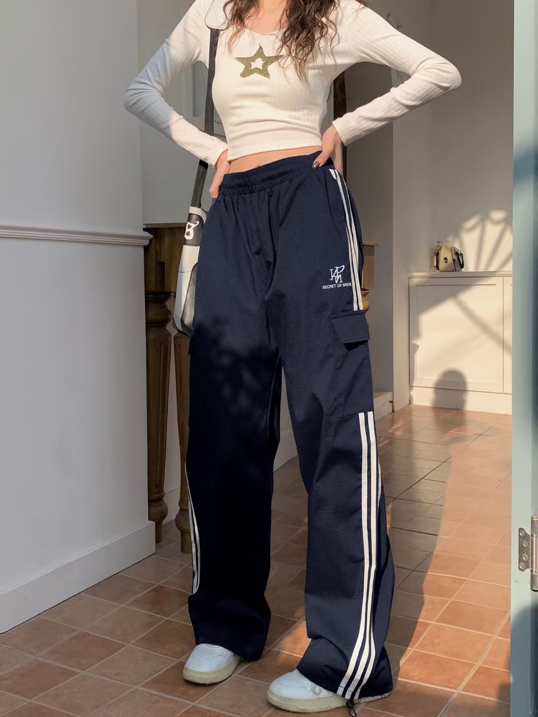 【韓国通販 dgo】ユニセックス スリーライン カジュアルパンツ ネイビー(M3682)