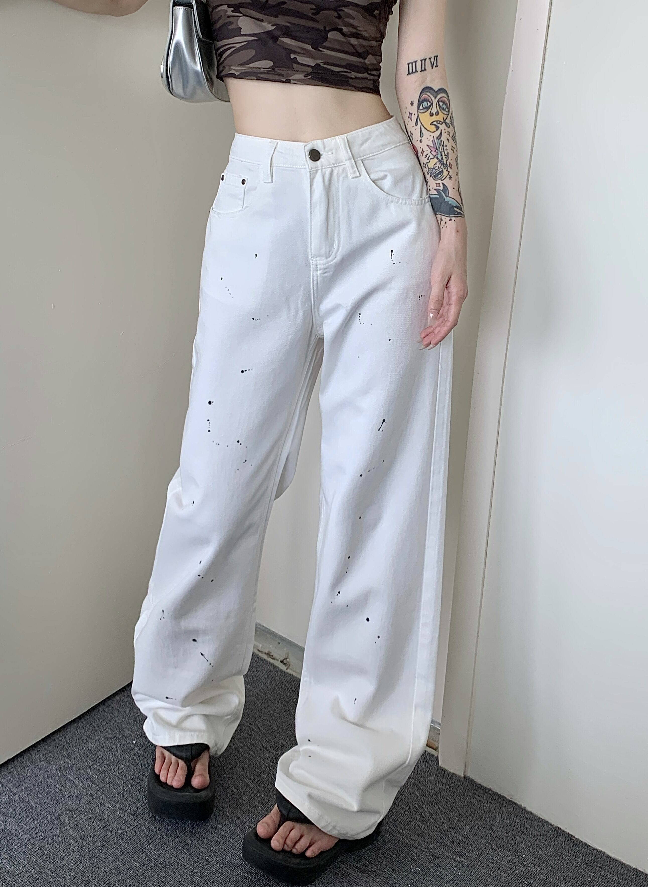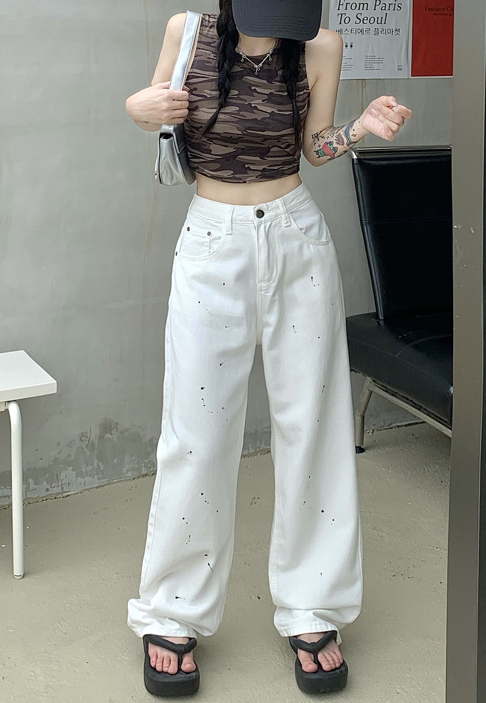 【韓国通販 dgo】カジュアル ワイドレッグ ホワイトパンツ(W3791)