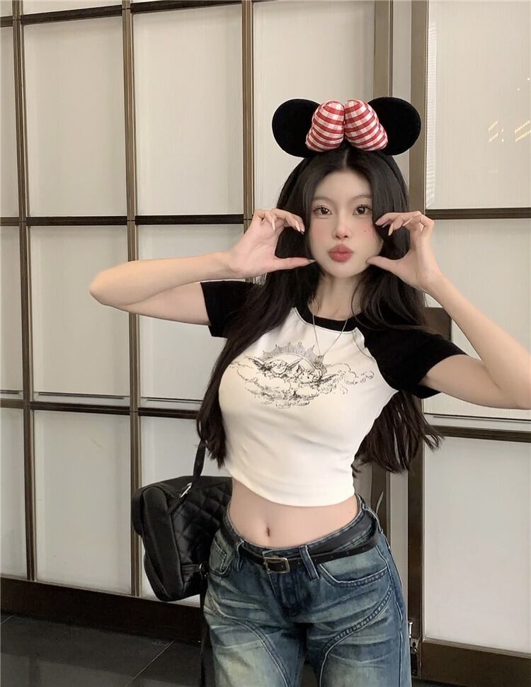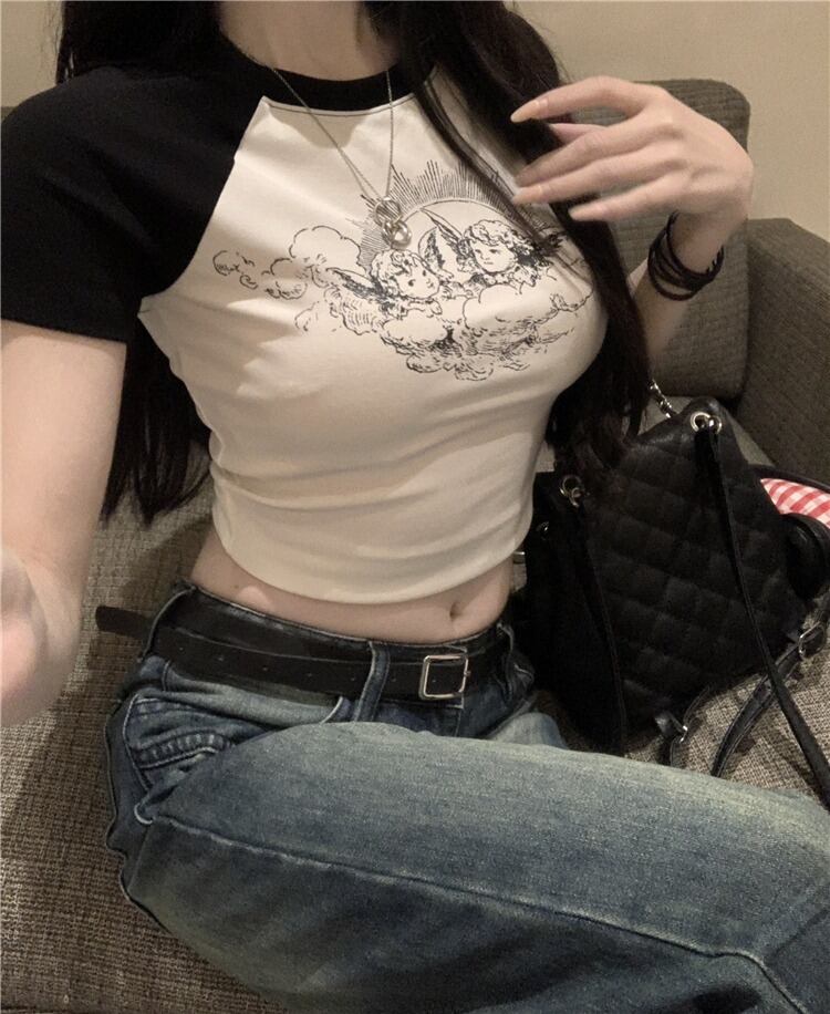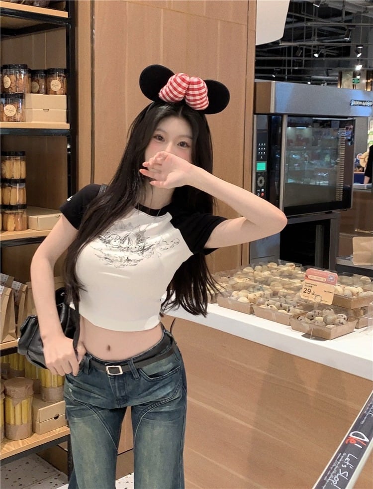 【韓国通販 dgo】ラグランスリーブ ホワイト リンガーTシャツ (W3789)トレンドアイテム