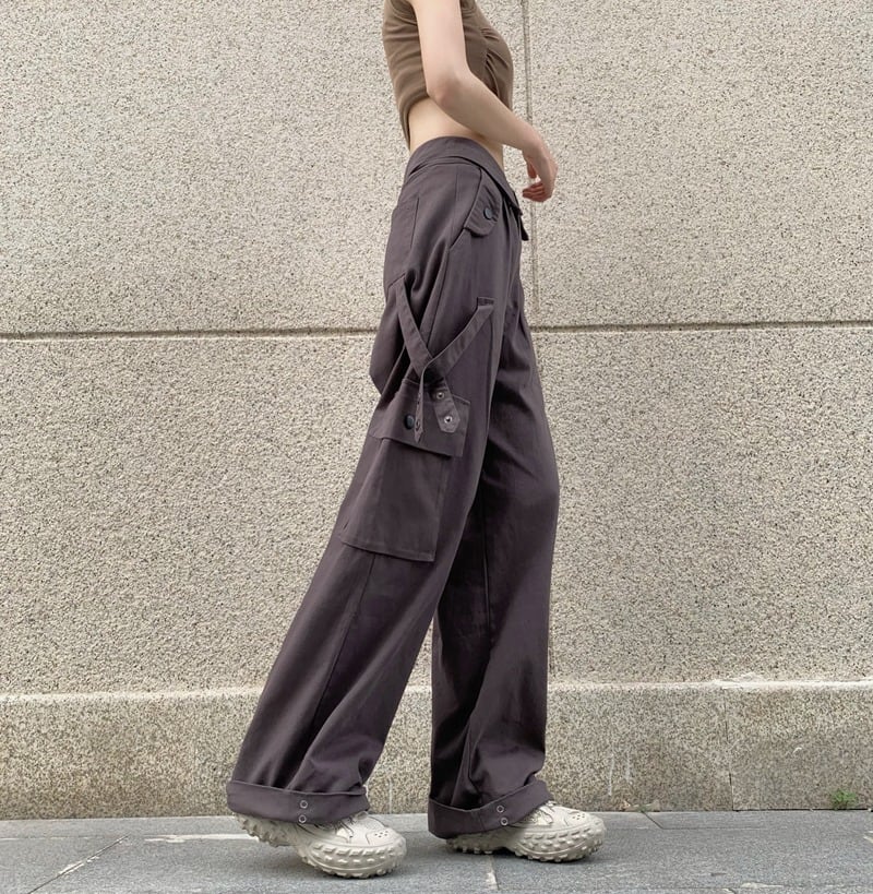 【韓国通販 dgo】UNISEX 2colors ゆったり カーゴパンツ グレー/ブラウン(M3780)トレンドアイテム