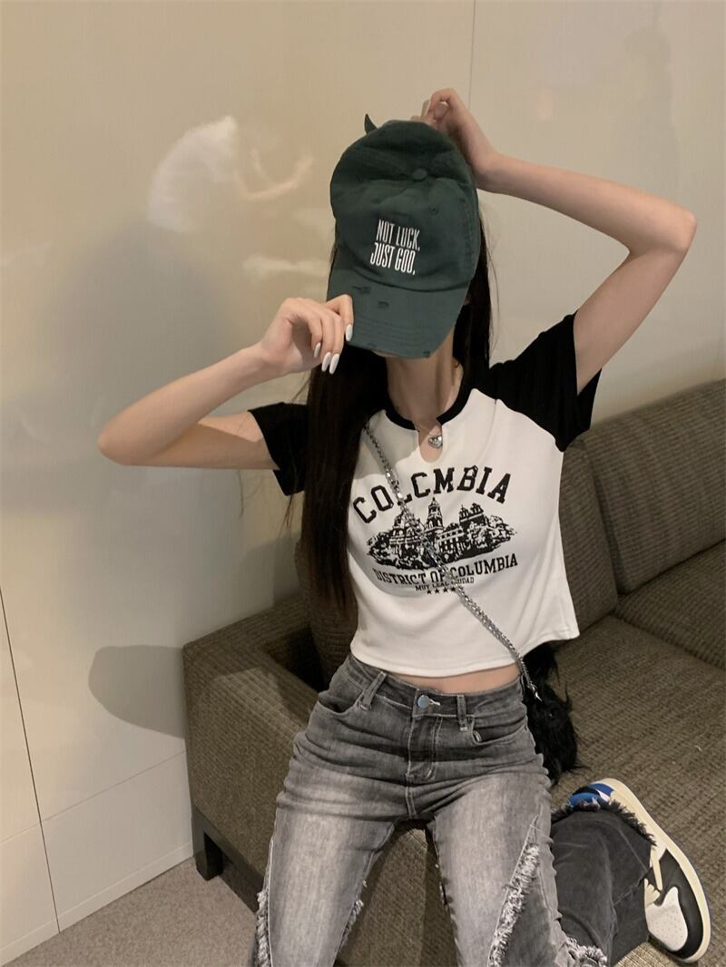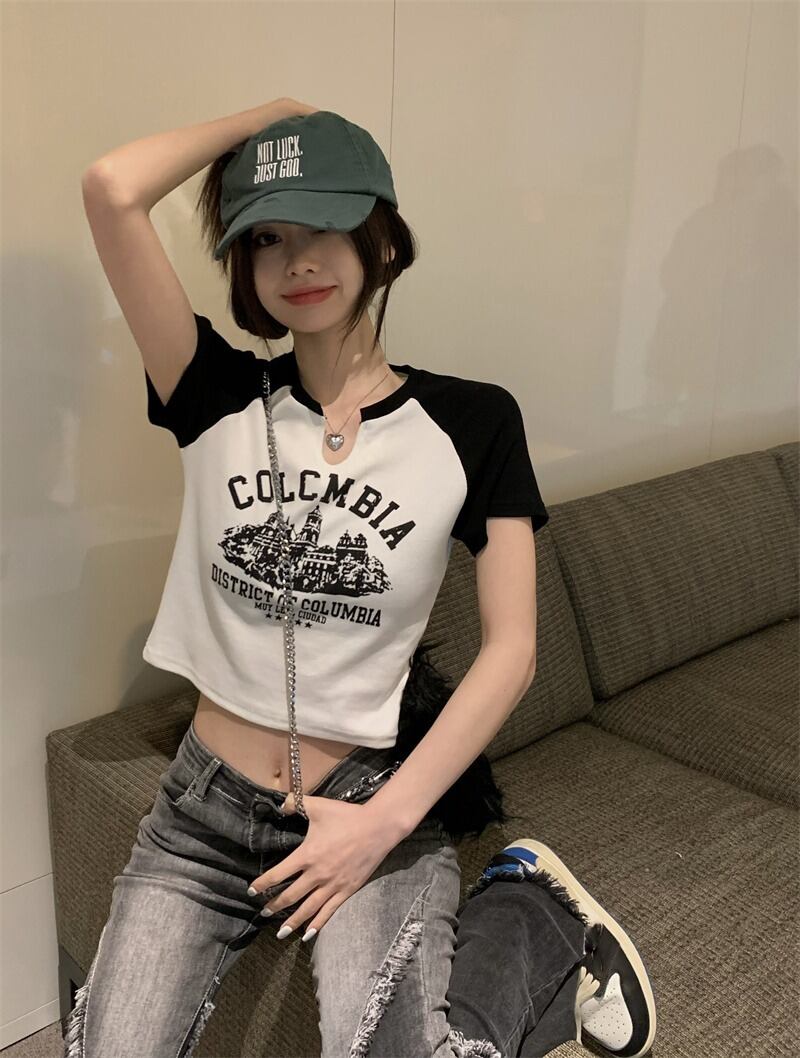 【韓国通販 dgo】2colors ショート レタープリントTシャツ ブラウン/ホワイト(W3773)センス溢れるファッションitem