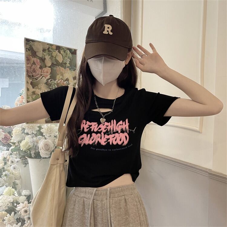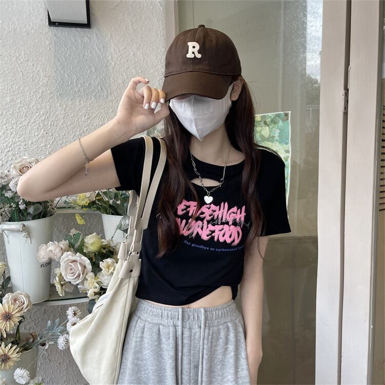 【韓国通販 dgo】2colors ショート レタープリントTシャツ ホワイト/ブラック(W3771)センス溢れるファッションitem