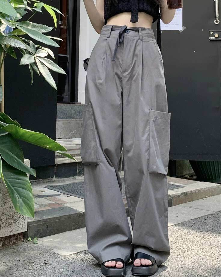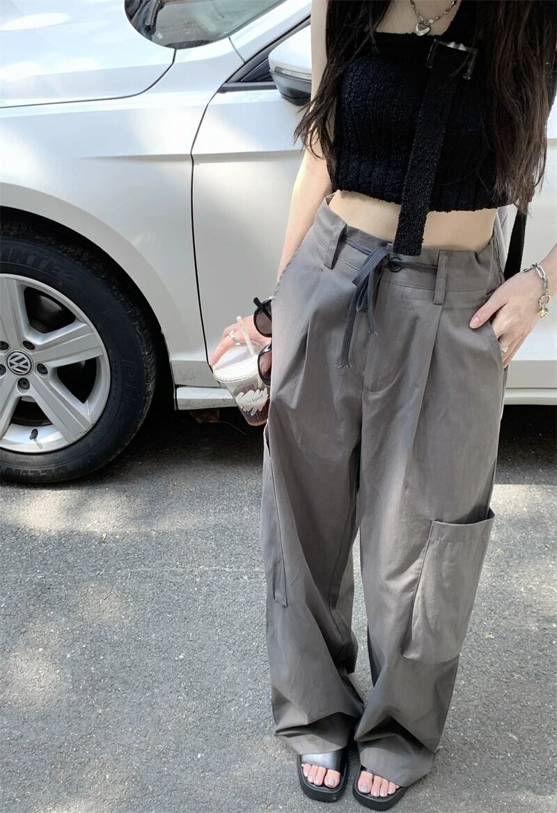 【韓国通販 dgo】2colors ハイウエスト カジュアル カーゴパンツ グレー/ブラック(W3835)センス溢れるファッションitem