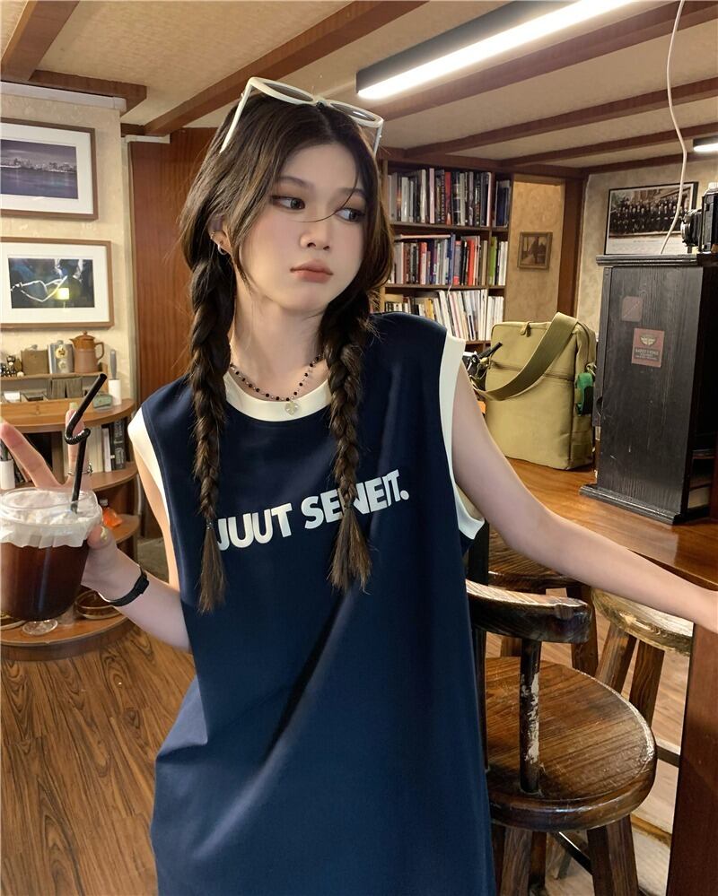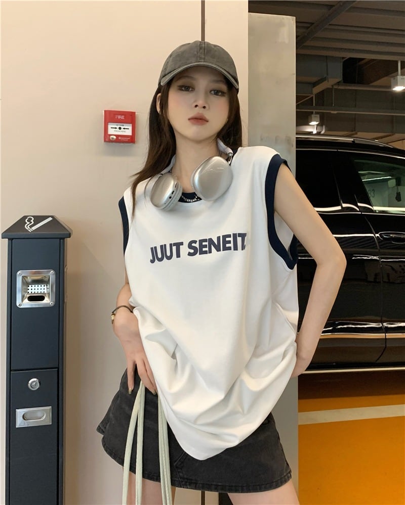 【韓国通販 dgo】2colors スリーブレス レタープリントトップス ホワイト/ネイビー(W3827)トレンドアイテム