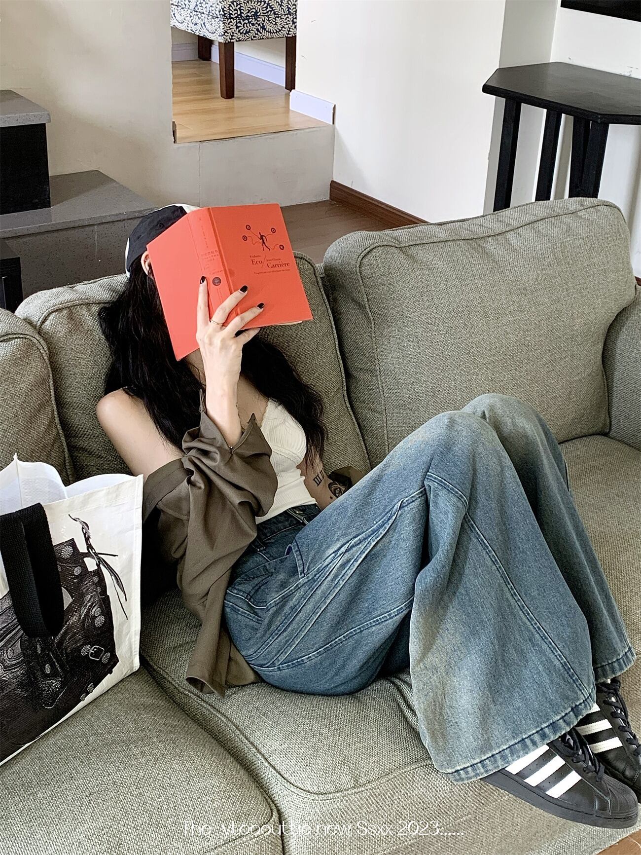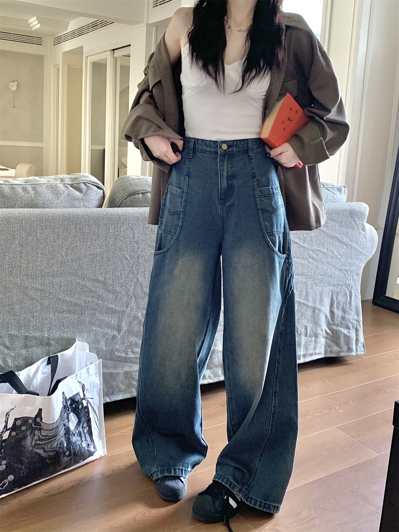 【韓国通販 dgo】UNISEX ルーズ ワイドレッグジーンズ レトロブルー(M3826)センス溢れるファッションitem
