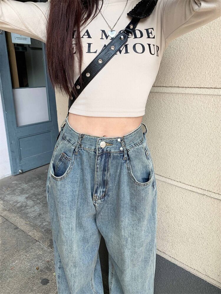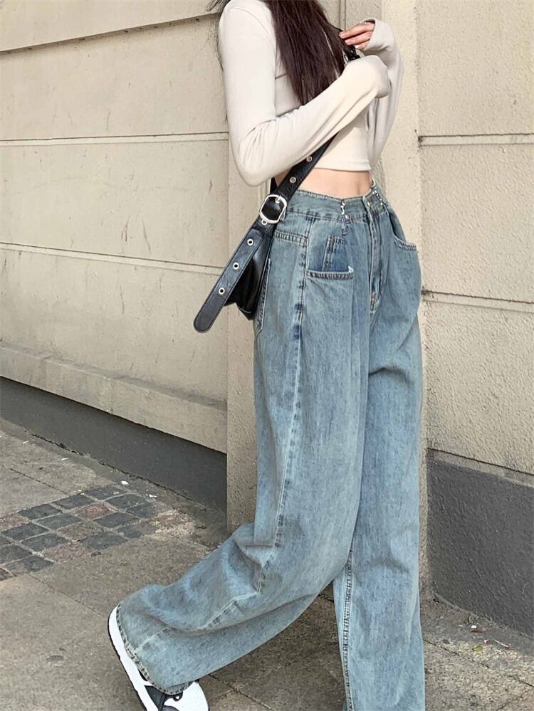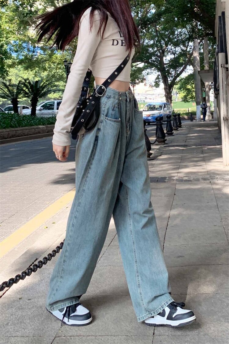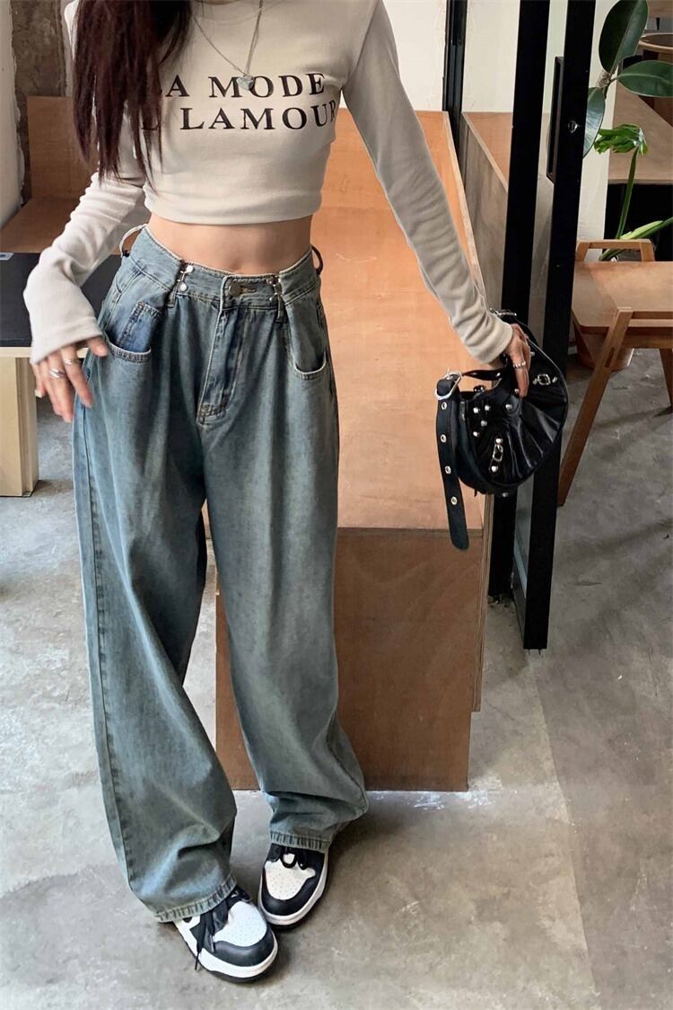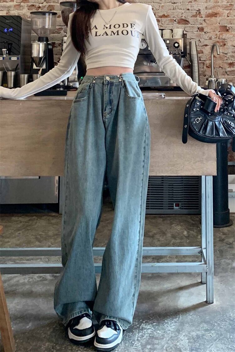 【韓国通販 dgo】ワイドレッグストレートジーンズ ライトブルー(W3825)センス溢れるファッションitem