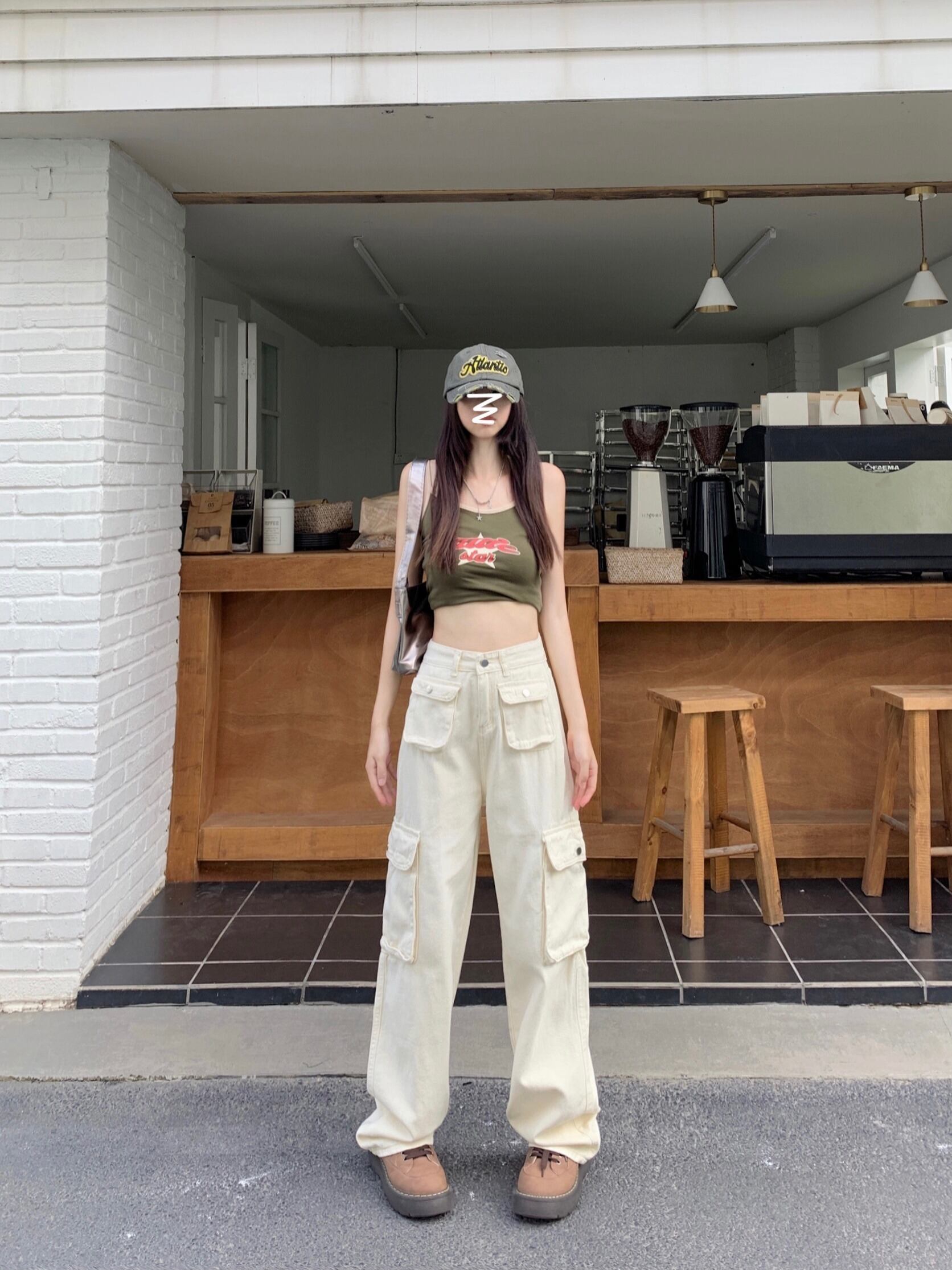 【韓国通販 dgo】UNISEX マルチポケット ホワイト カーゴパンツ(M3824)
