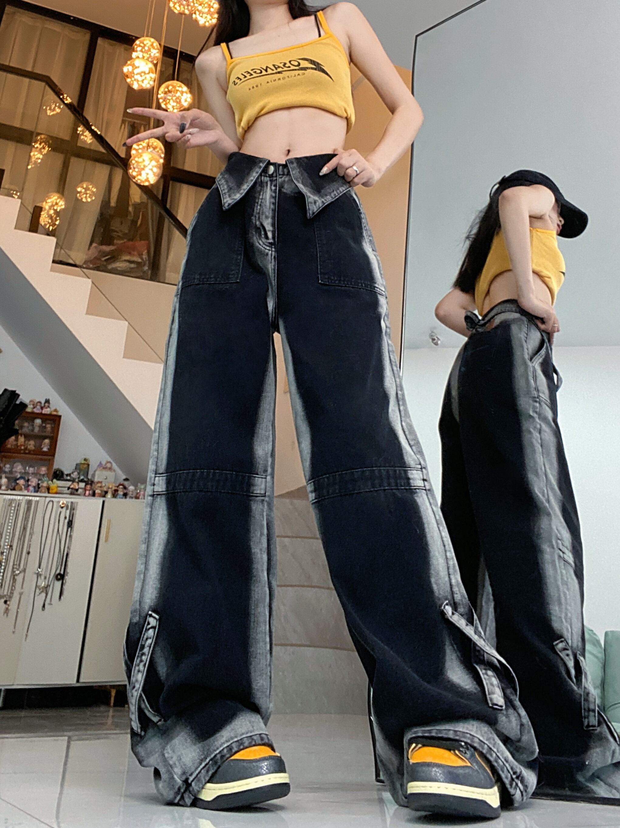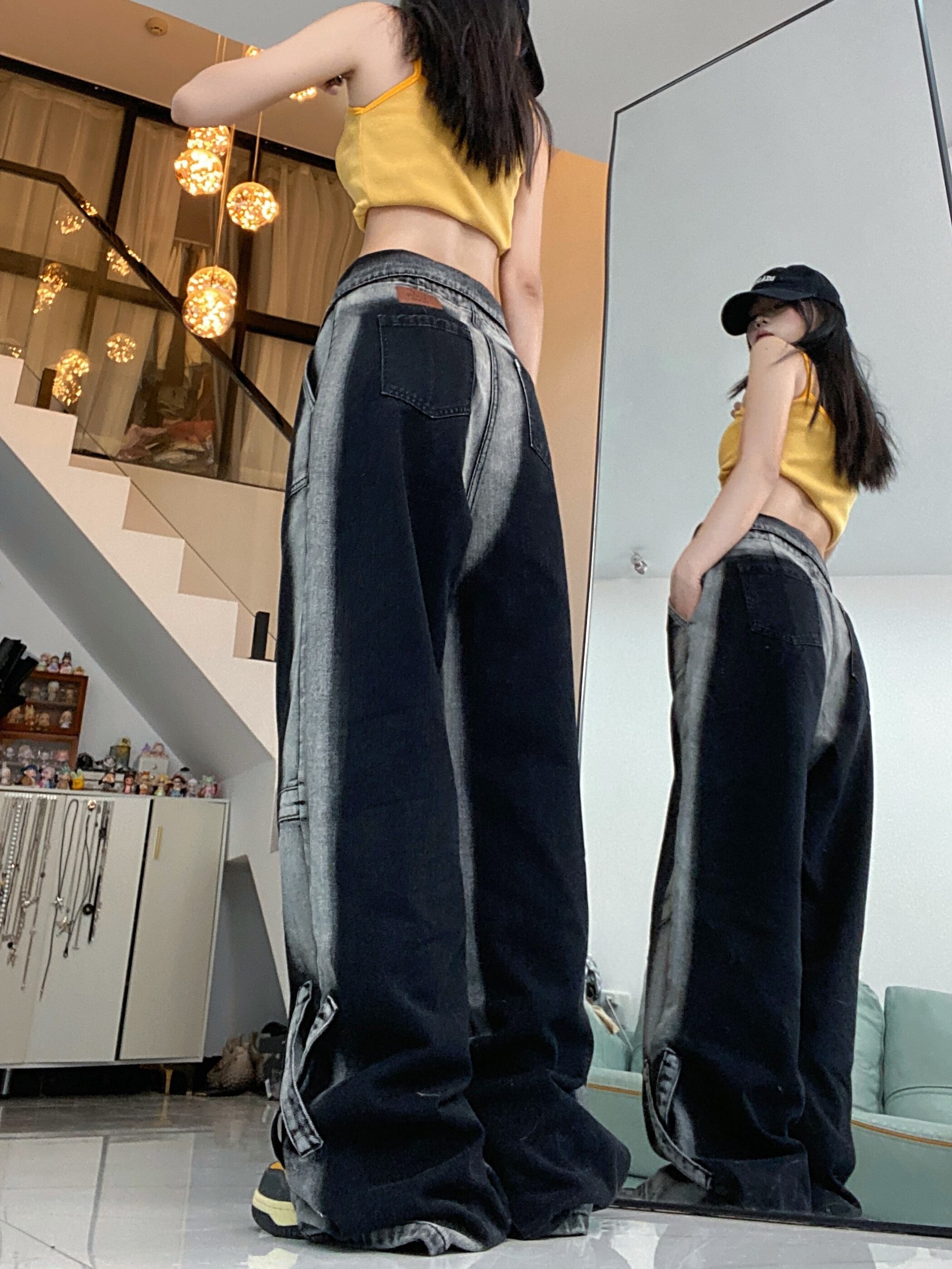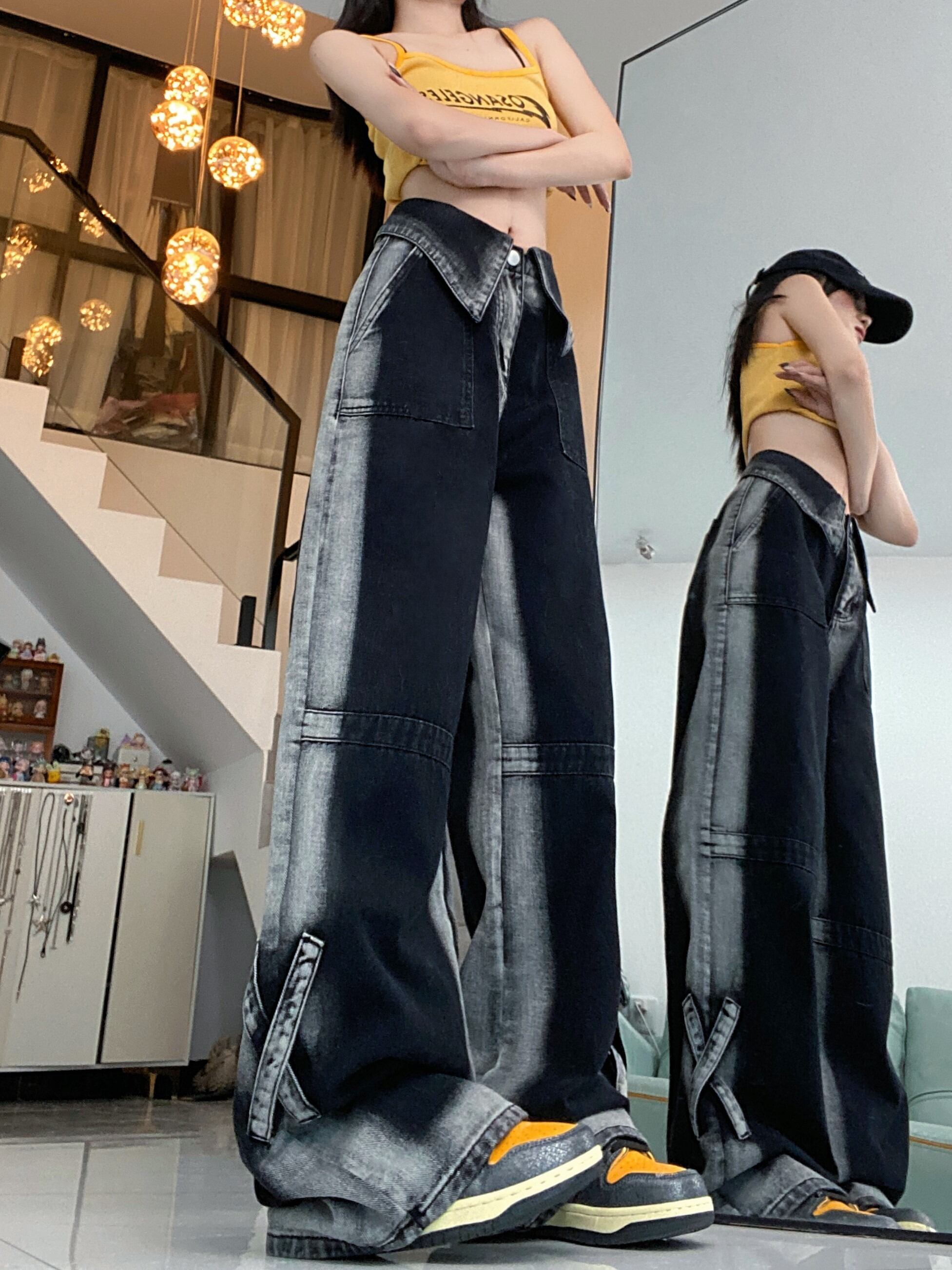 【韓国通販 dgo】UNISEX タイダイ ワイドレッグジーンズ ダークグレー(M3822)
