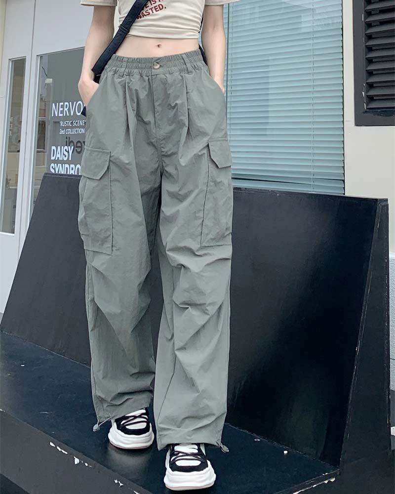 【韓国通販 dgo】2colors ワイドレッグカーゴパンツ ネイビーブルー/グレーグリーン(W3817)トレンドアイテム