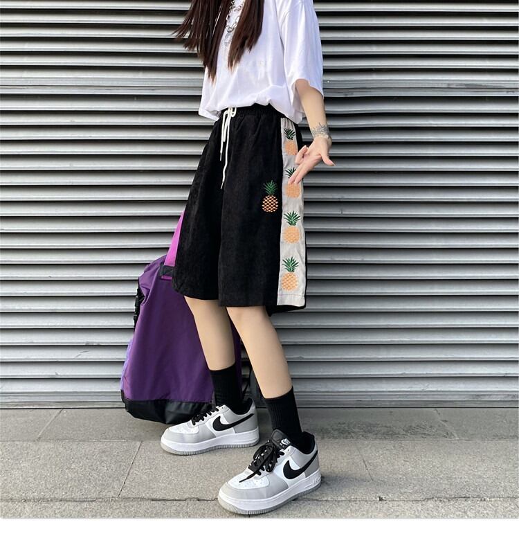 【韓国通販 dgo】UNISEX 2colors フルーツ刺繍ハーフパンツ ブラック/ネイビー(M3812)センス溢れるファッションitem